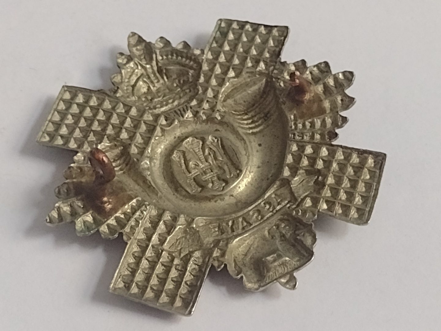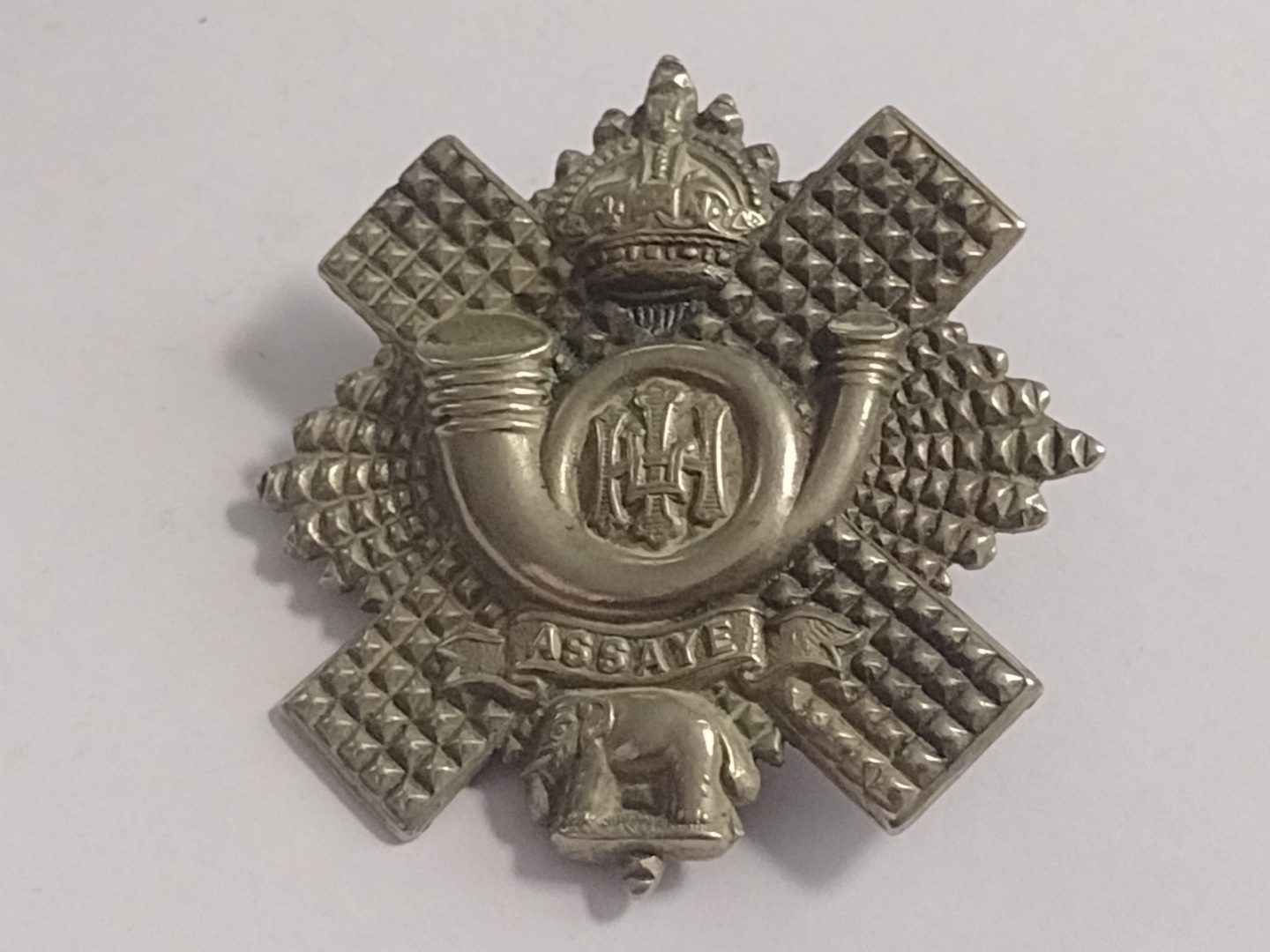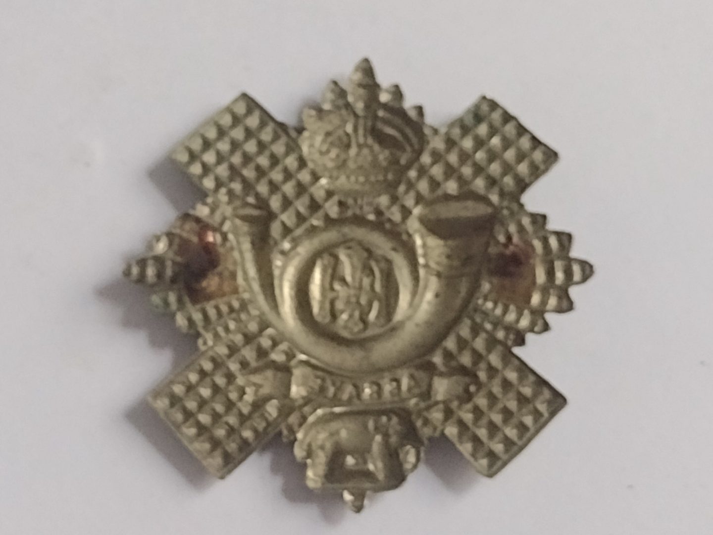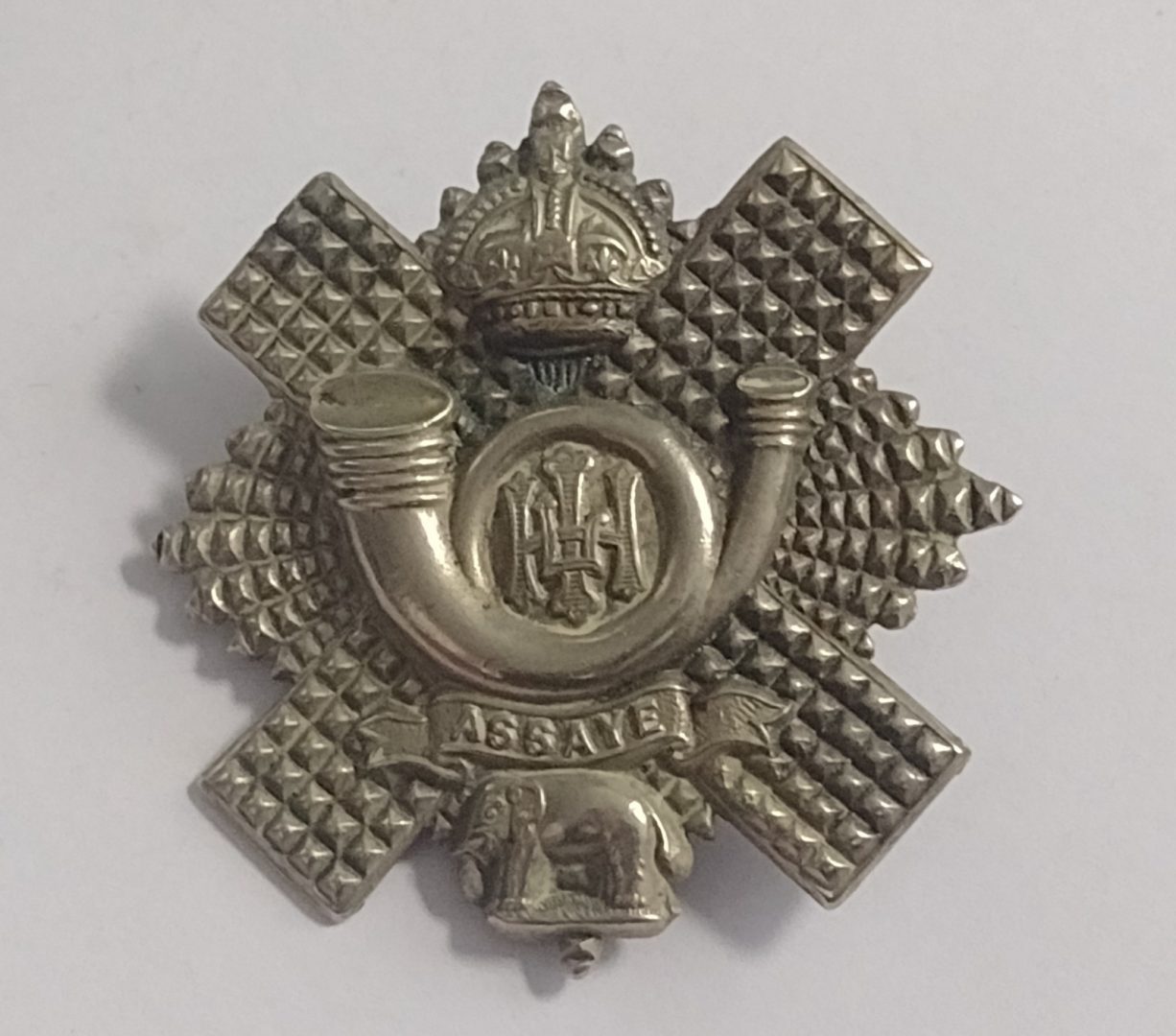 WW1 Highland Light Infantry Cap Badge KC White Metal 52mm Antique – Original