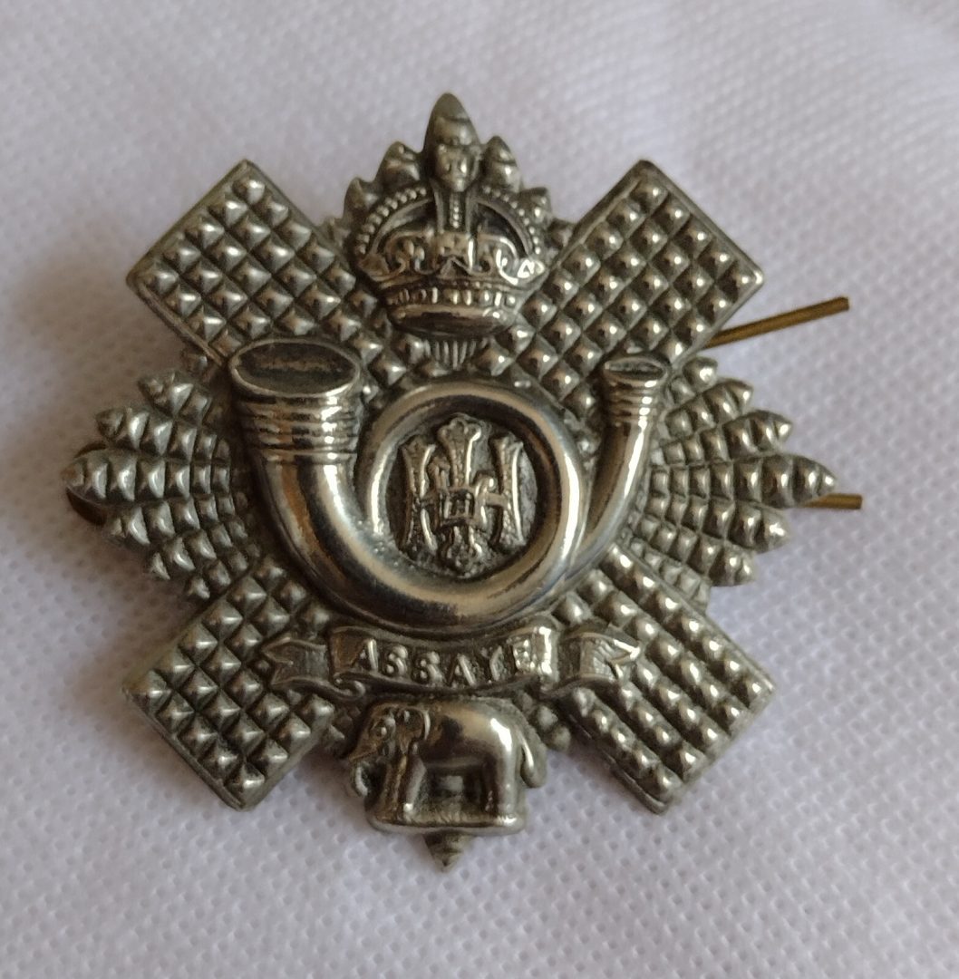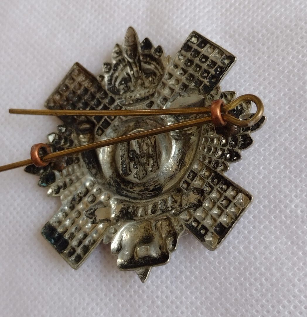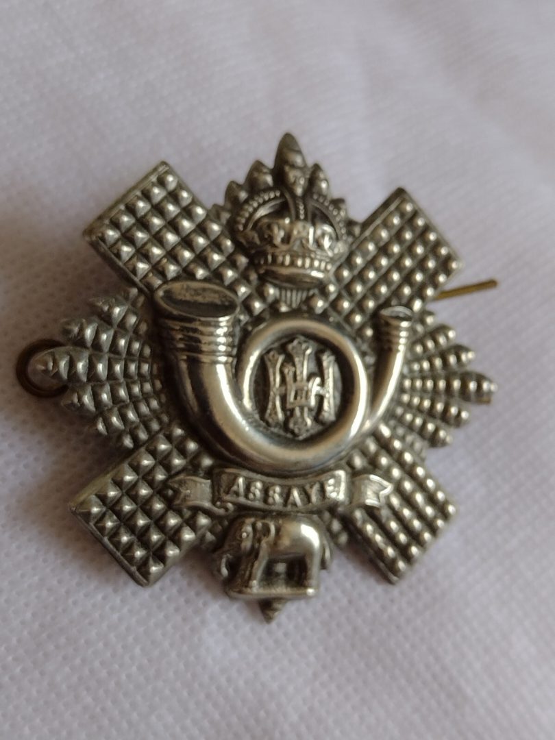 WW1 Highland Light Infantry Original Cap Badge Silver 2Lugs 54mm Antique