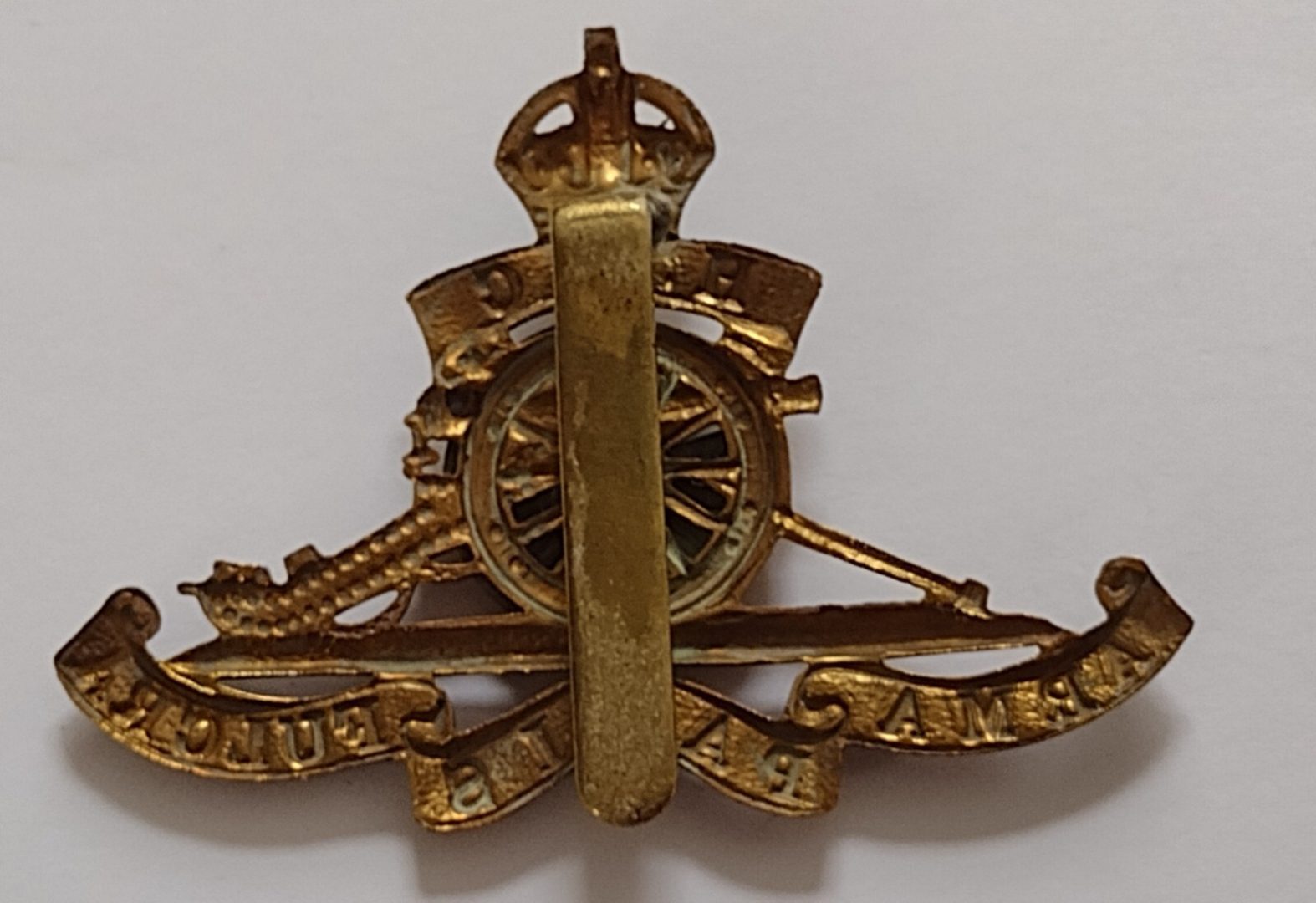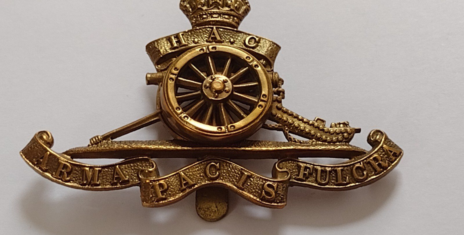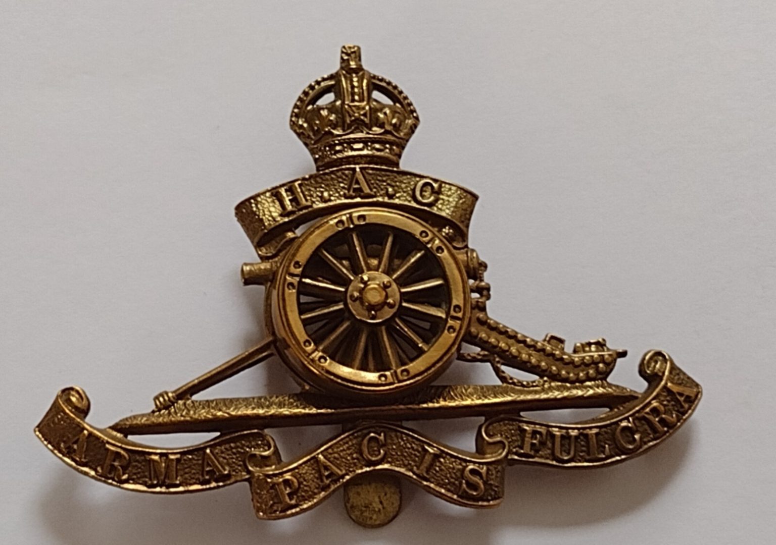 WW1 Honourable Artillery Company Cap Badge KC All Brass Moving Wheel ANTIQUE Org