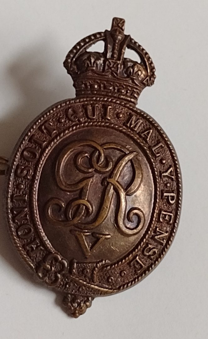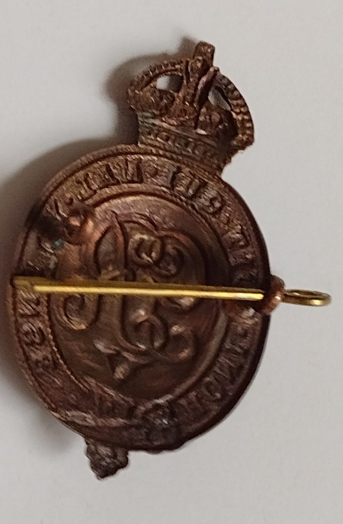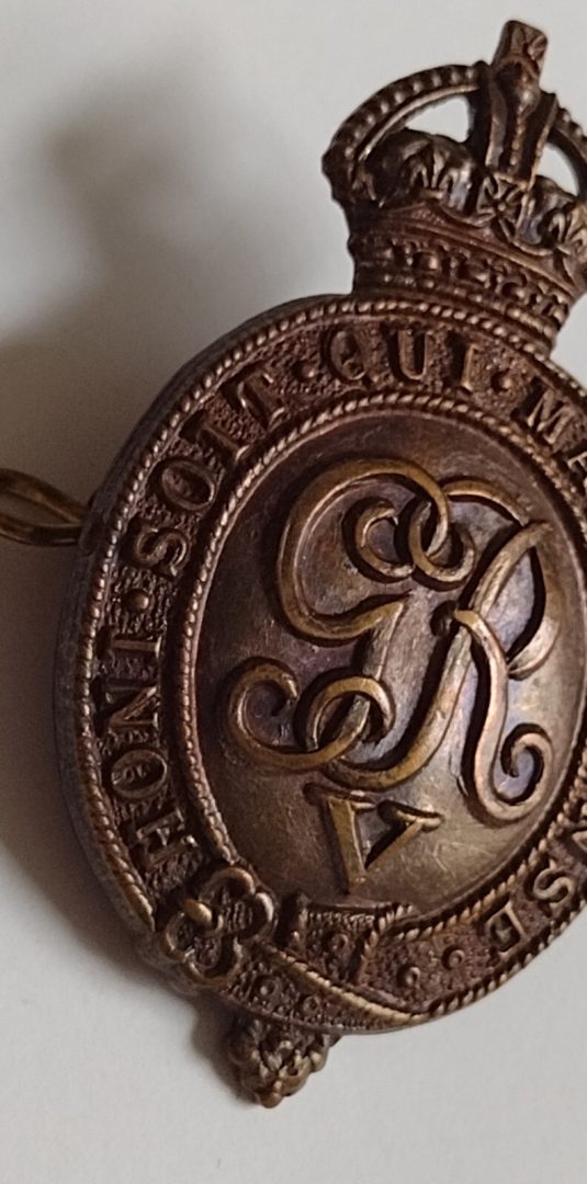 WW1 Household Battalion Cap Badge KC GV Bronze Issue Slider ANTIQUE Org