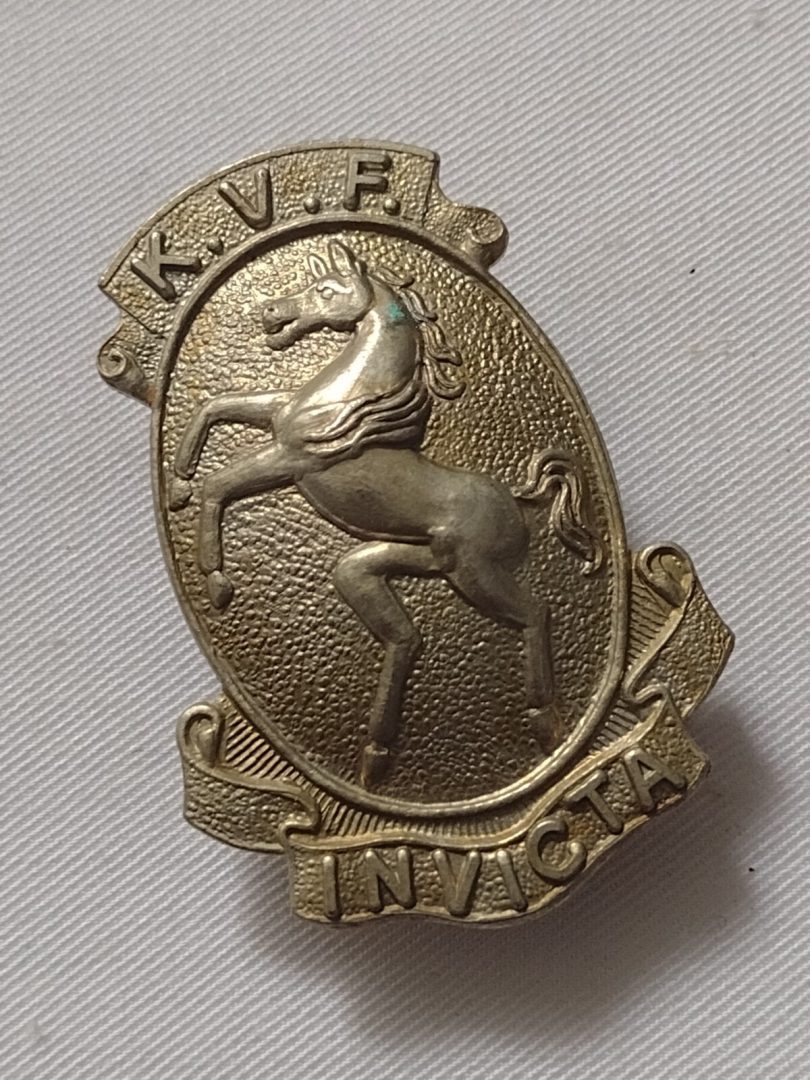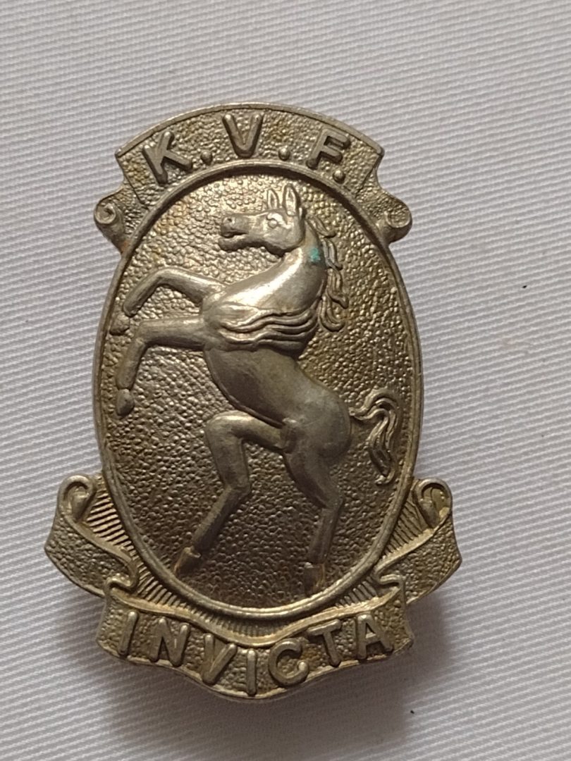 Be the first to review “WW1 Kent Volunteer Fencibles Cap Badge Kvf Invicta White Metal Slider Antique” Cancel reply