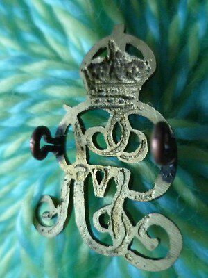 WW1 King’s Own Royal Norfolk Yeomanry Cap Badge KC GV Brass 2 Lugs ANTIQUE Org