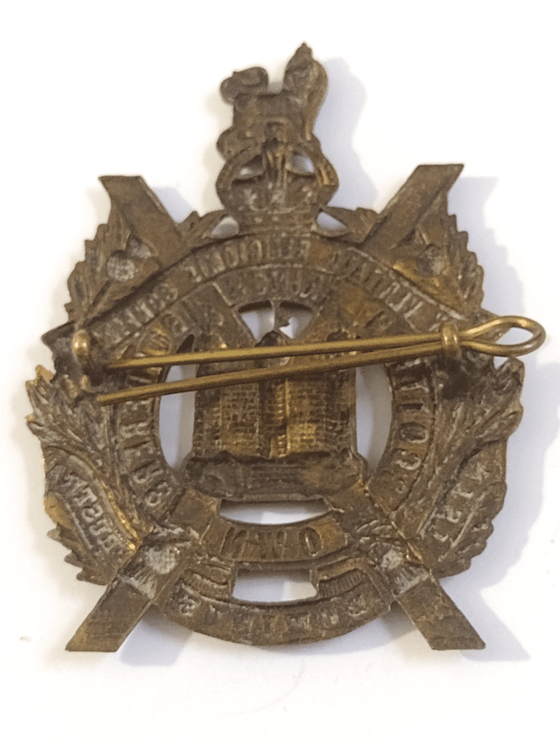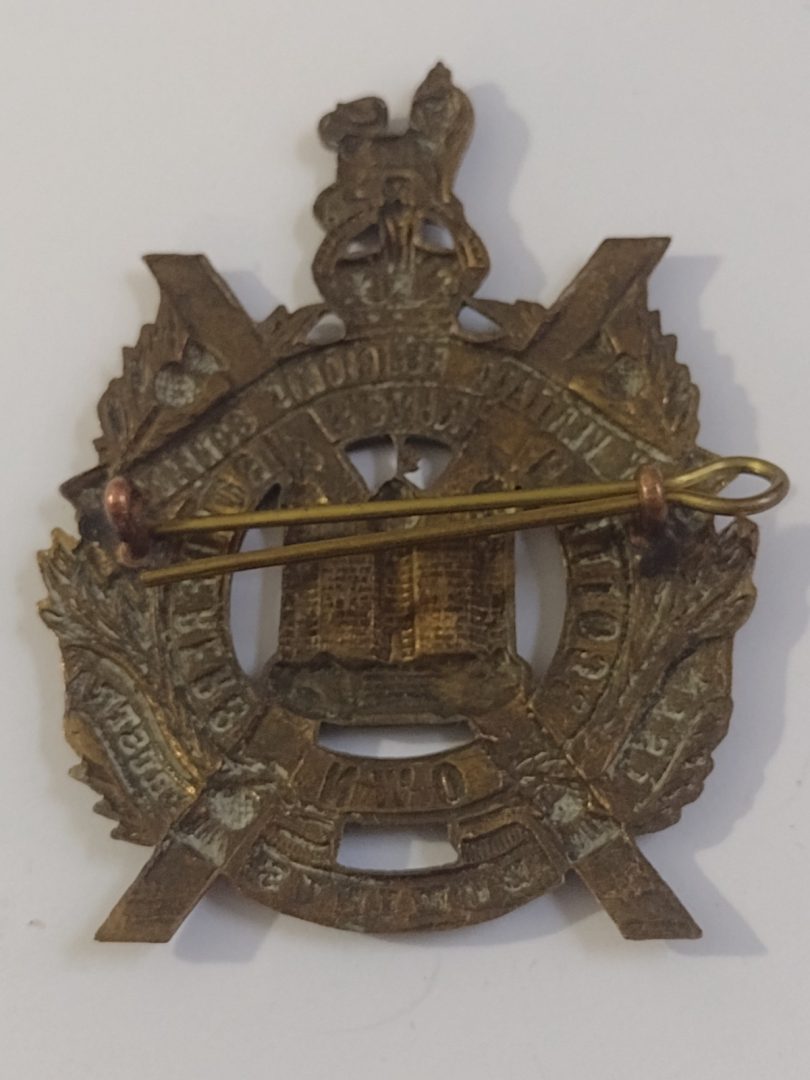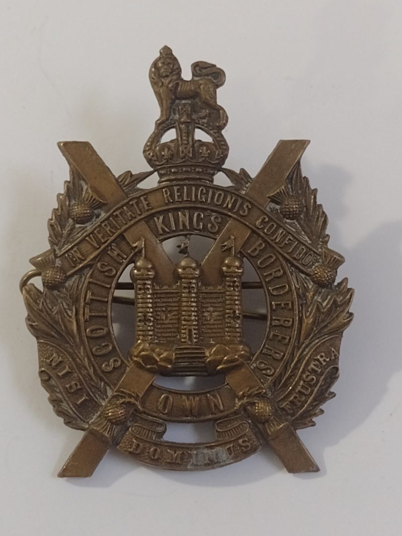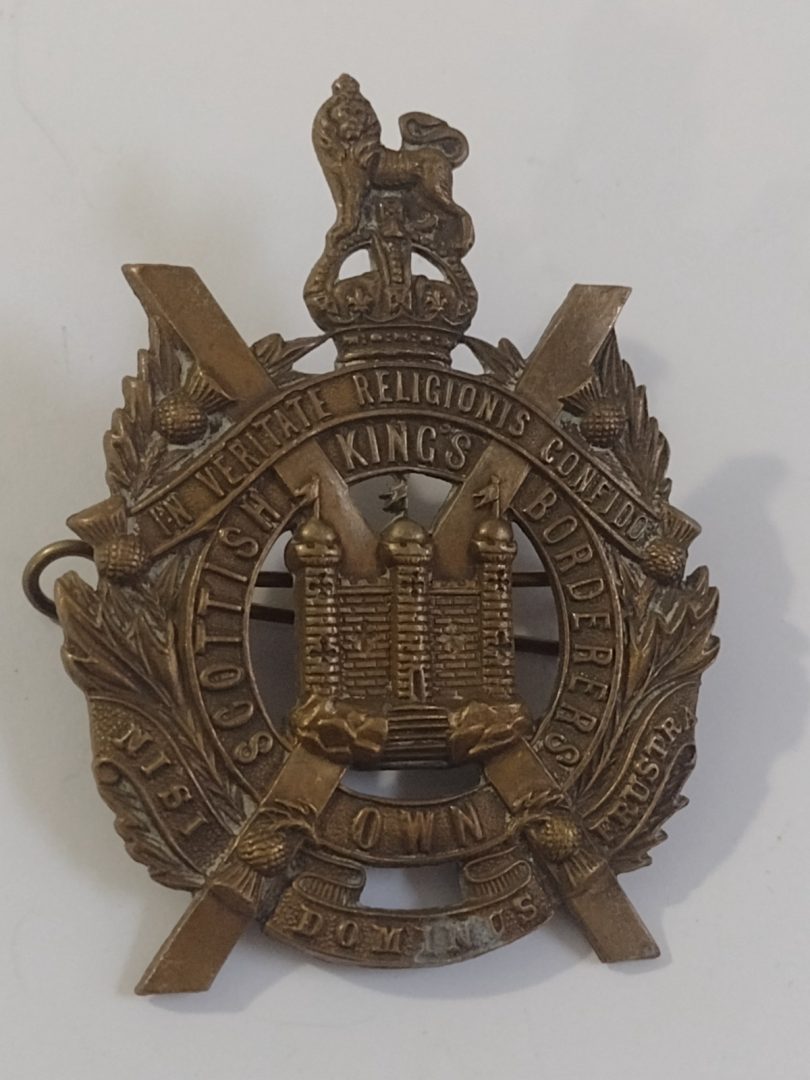WW1 King’s Own Scottish Borderers Cap Badge KC Brass Economy Antique – Original