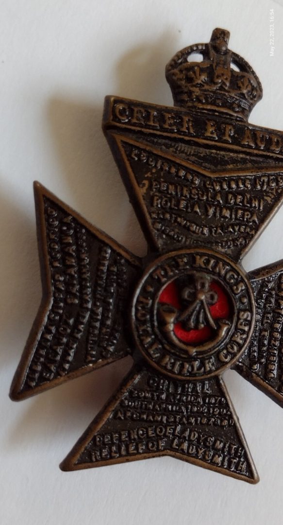 Be the first to review “WW1 Kings Royal Rifle Corps Cap Badge KC Blackened Brass Slider 53mm ANTIQUE Org”