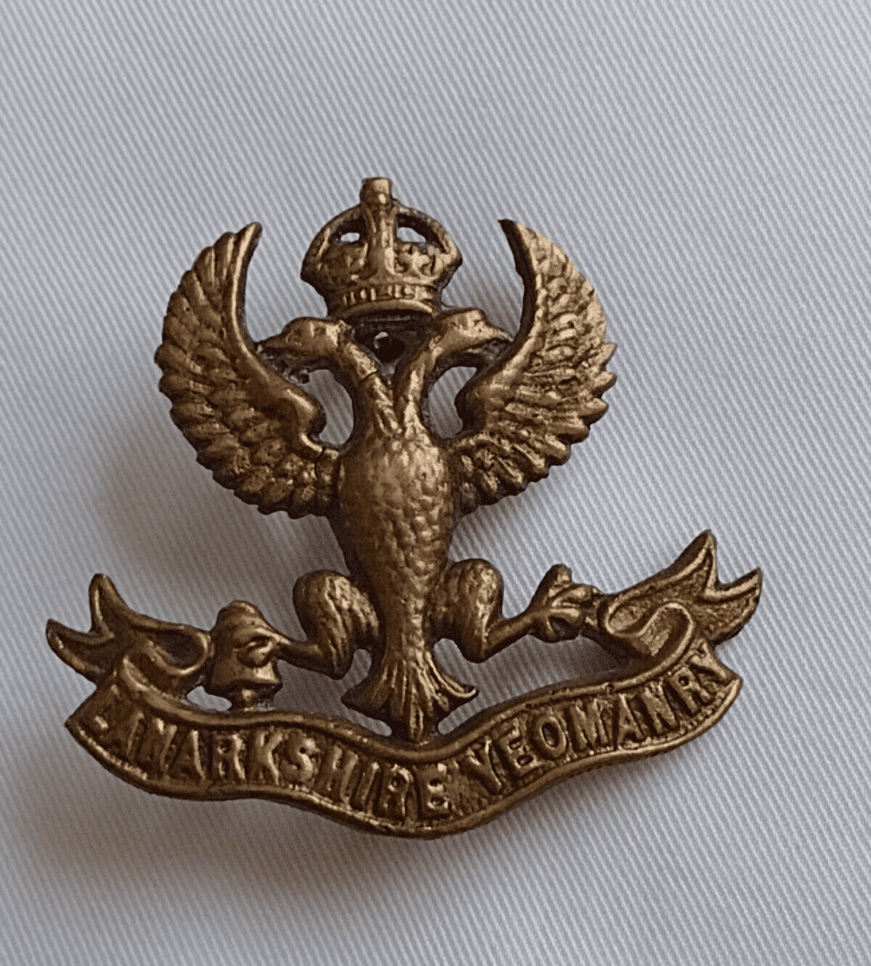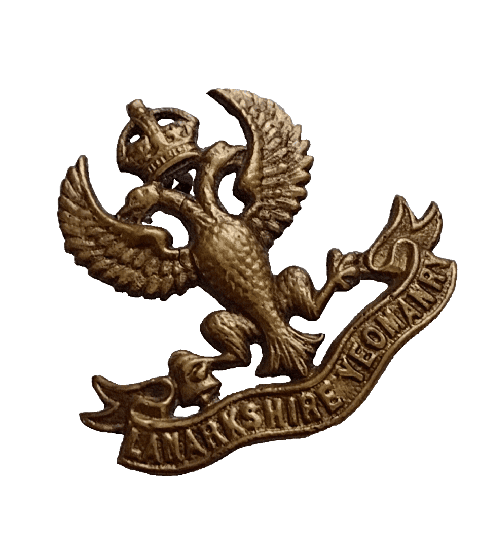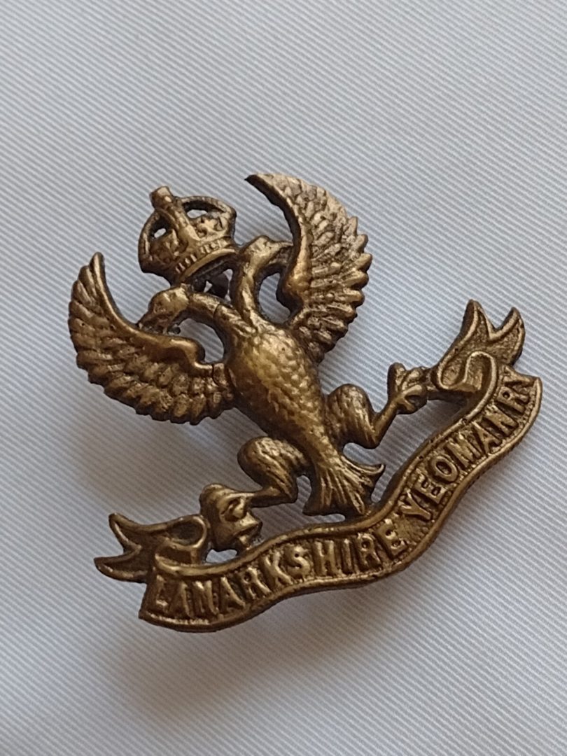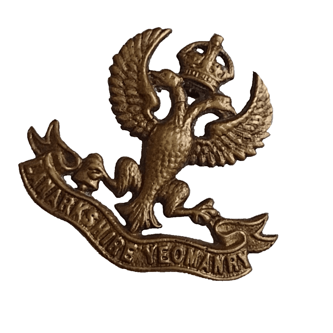 WW1 Lanarkshire Yeomanry Cap Badge KC All Brass 2 Lug 42 Mm Antique Org