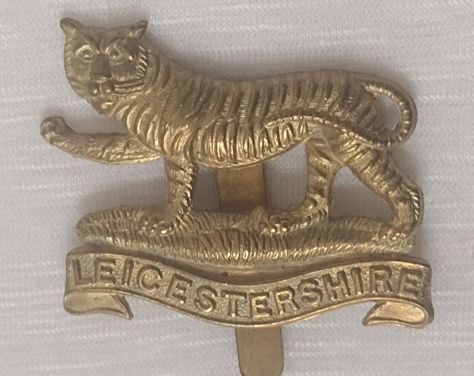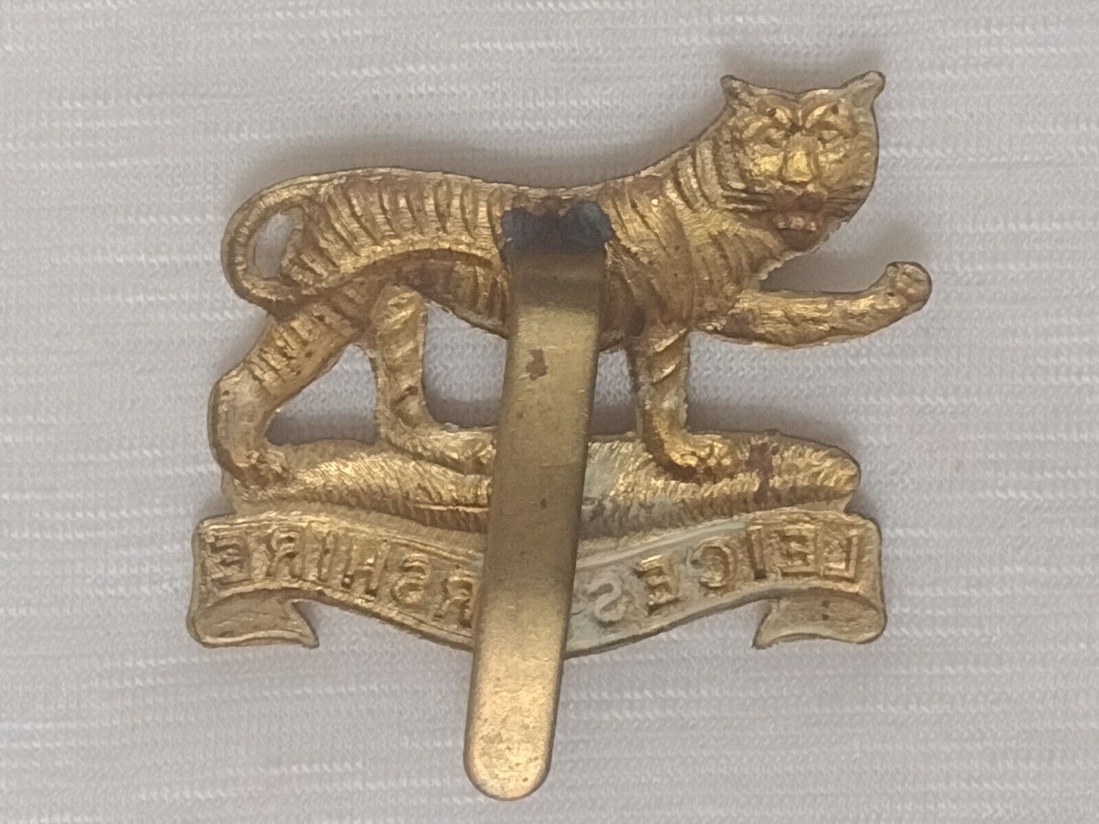 WW1 Leicestershire Regiment Cap Badge Brass Economy Slider 38mm Antique Original