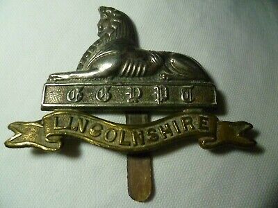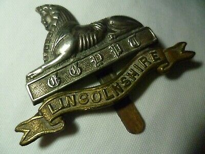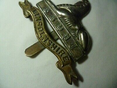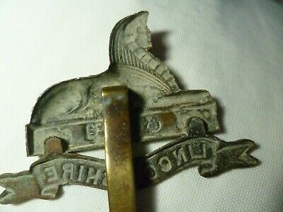 WW1 Lincolnshire Regiment Cap Badge Bi-Metal Long Slider Antique Original
