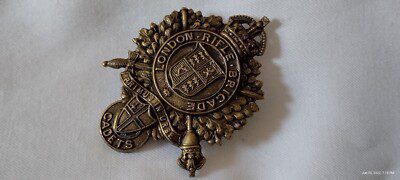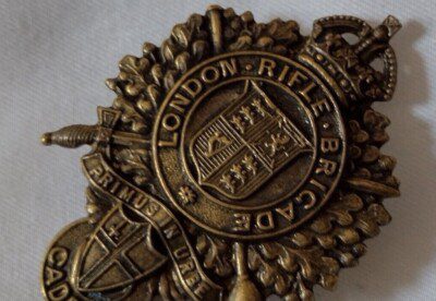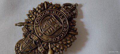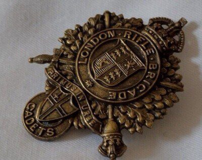 WW1 London Rifle Brigade Cadets Cap Badge KC All Brass 2 Lugs Antique Original