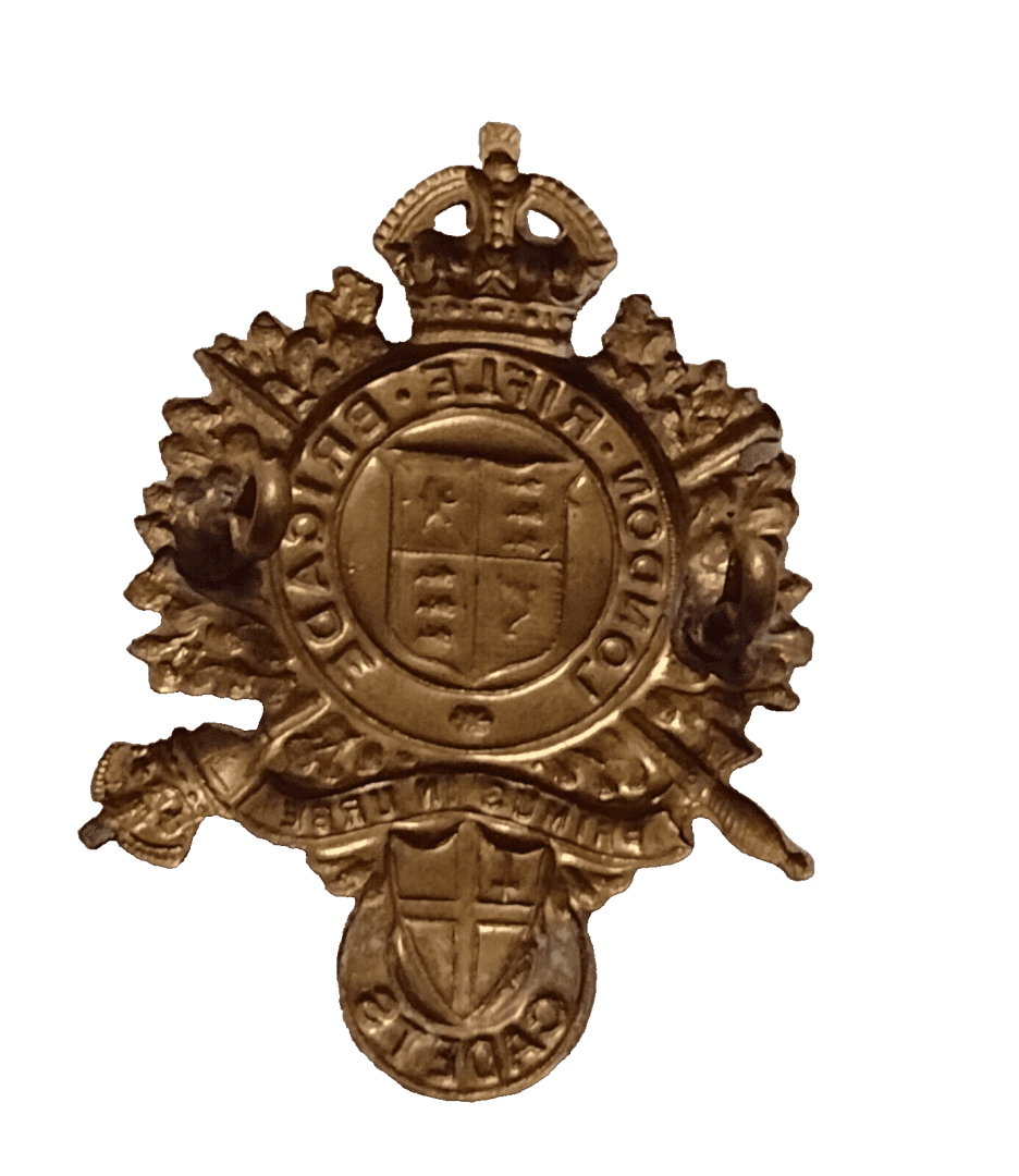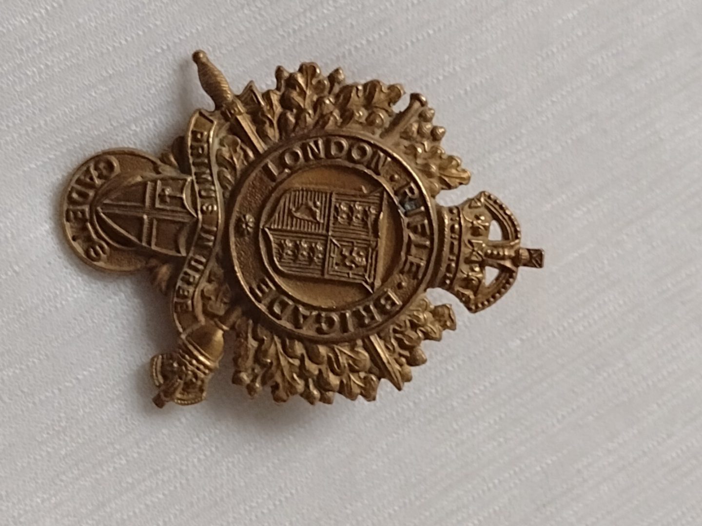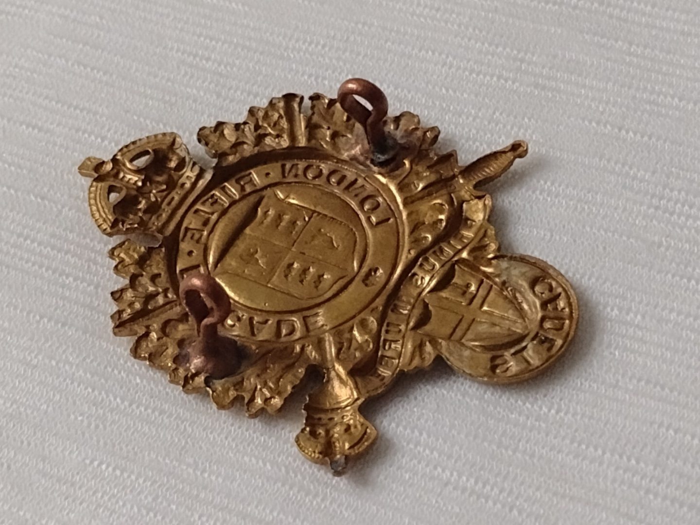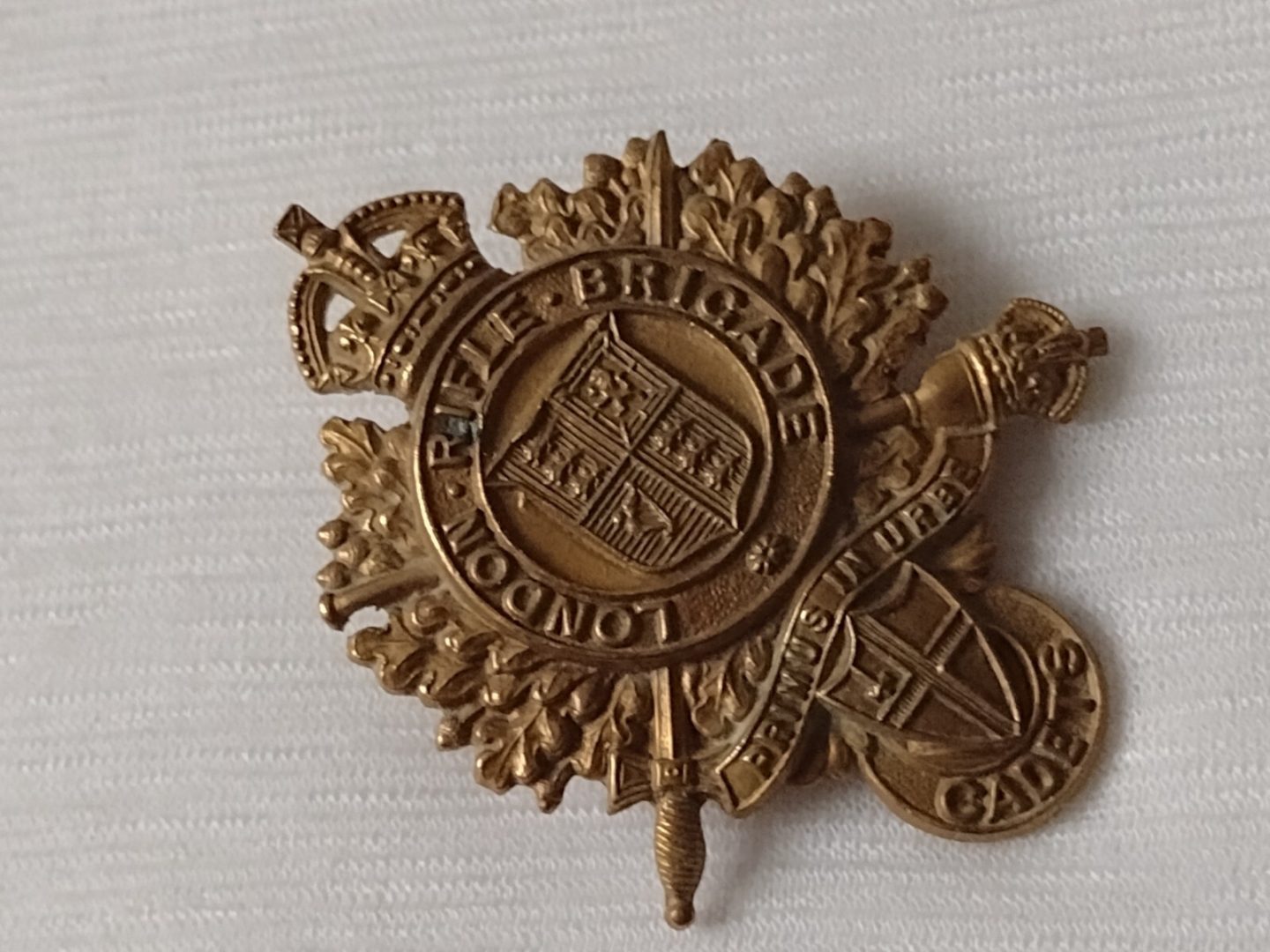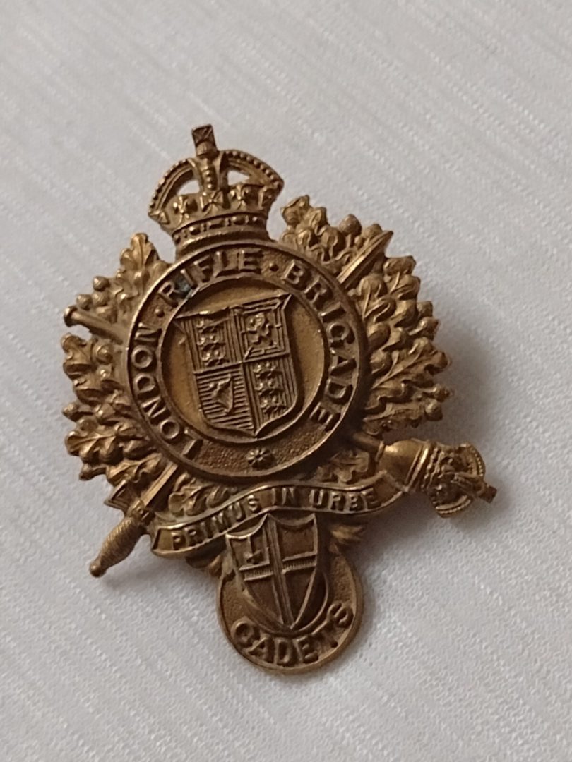 WW1 London Rifle Brigade Cadets Cap Badge KC All Brass 2Lugs 53mm Antique Org