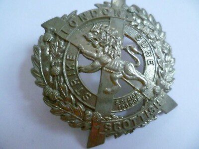 WW1 London Scottish Regiment Cap Badge WM 2 Lugs Antique Original