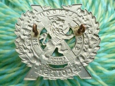 WW1 London Scottish Regiment Cap Badge WM 2 Lugs Antique Original