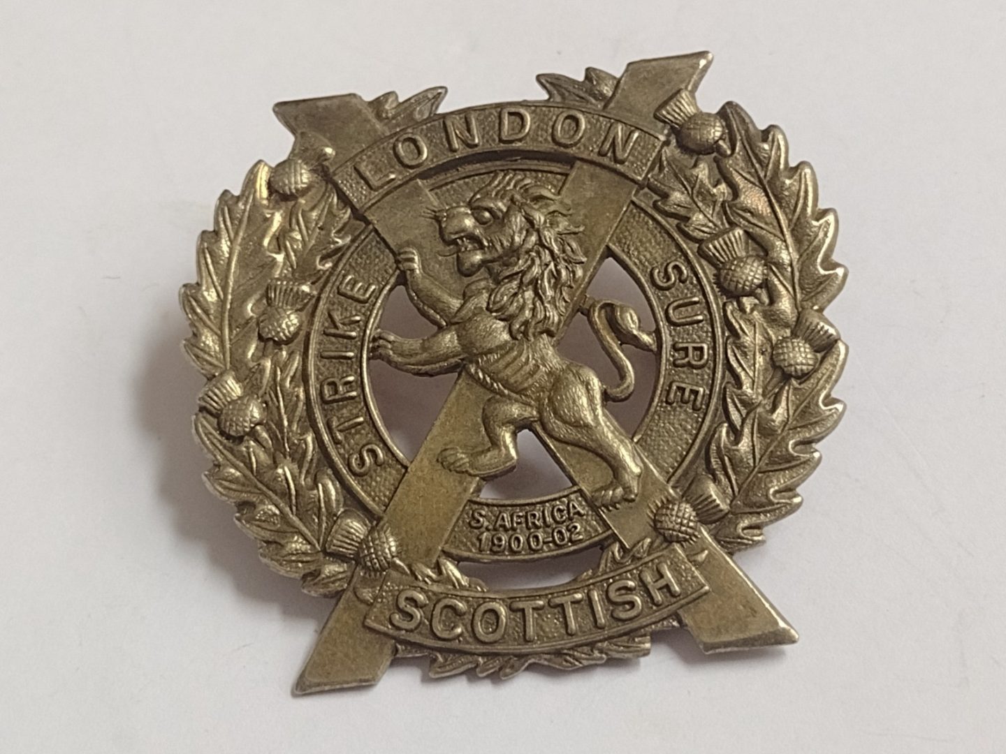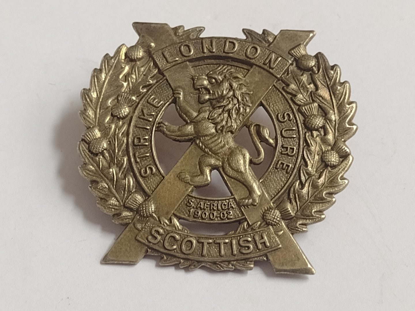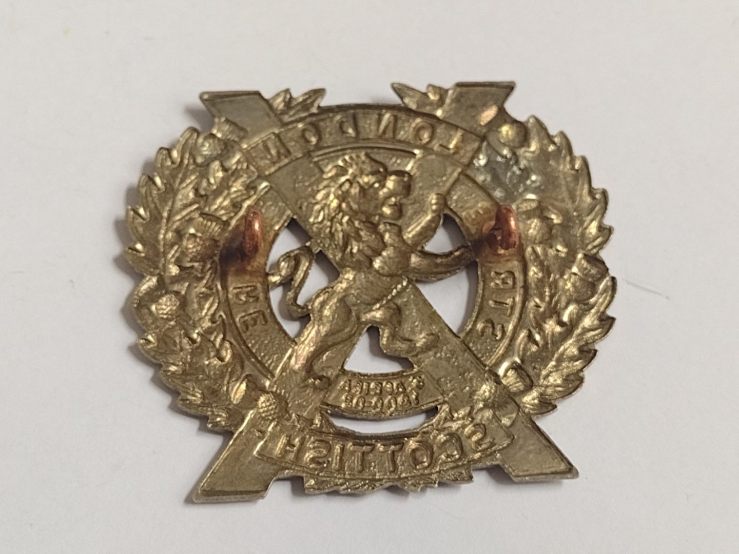 WW1 London Scottish Regiment Original Cap Badge White Metal 2Lugs 52mm Antique