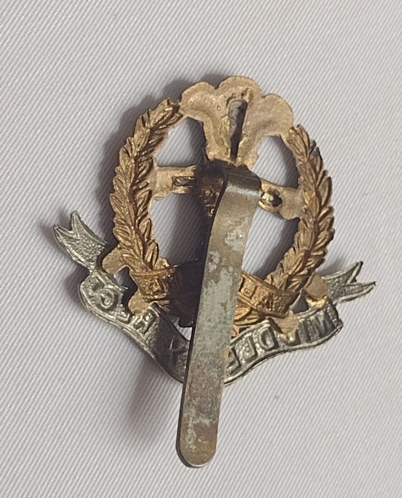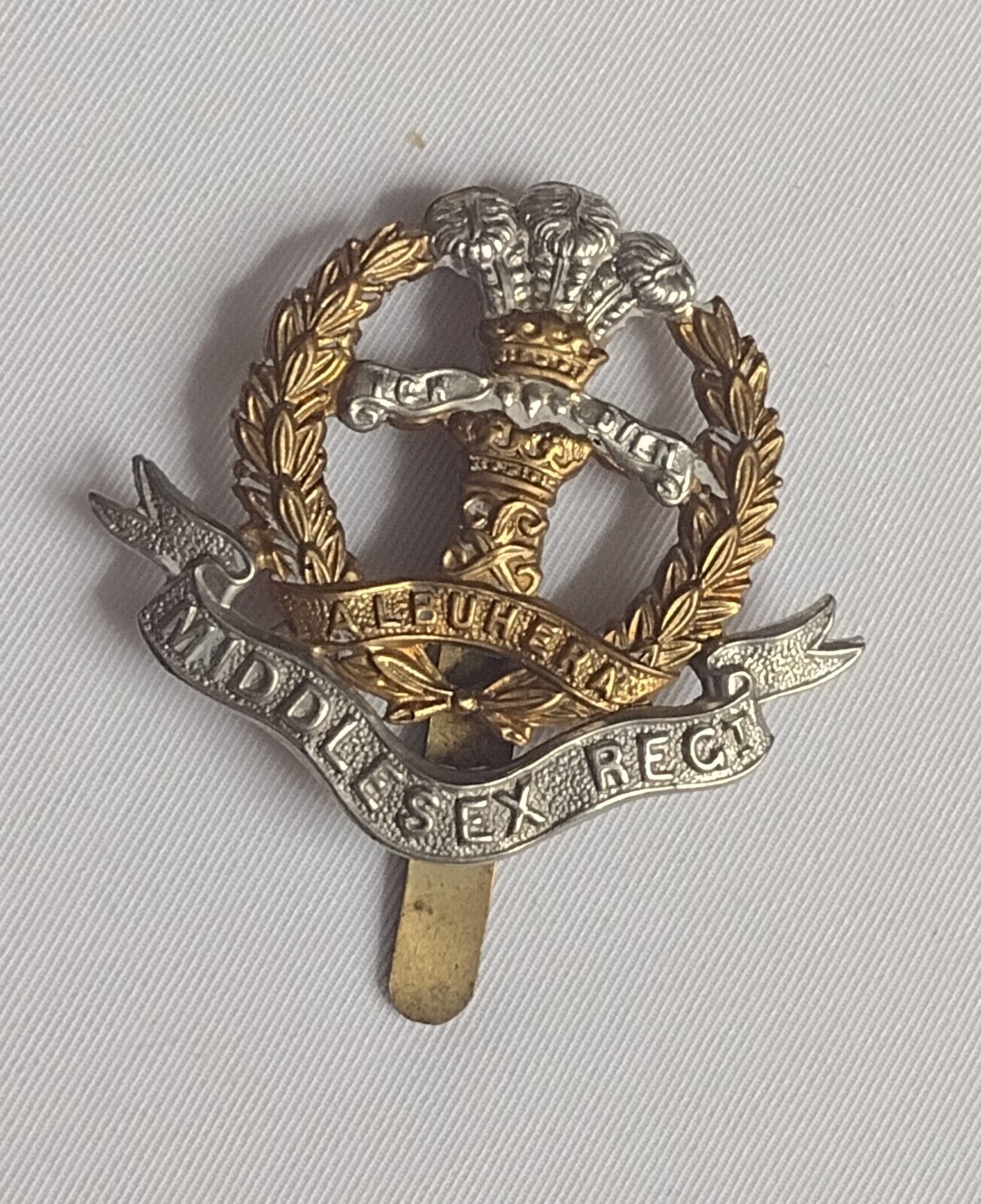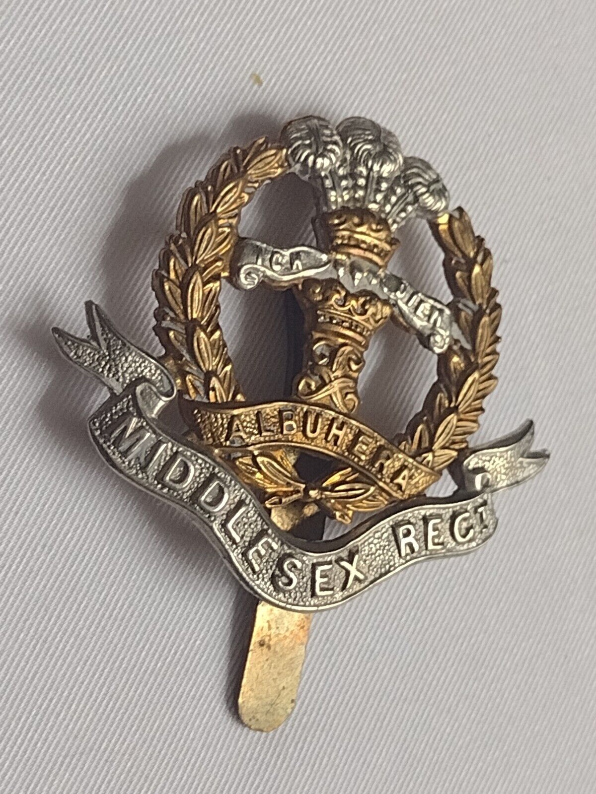 WW1 Middlesex Regiment Cap Badge Bi-Metal Long Slider 42mm Antique Original