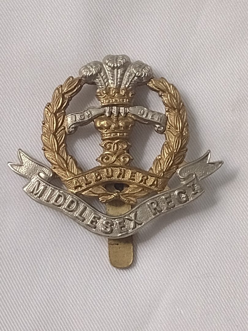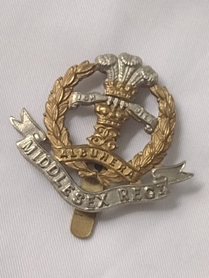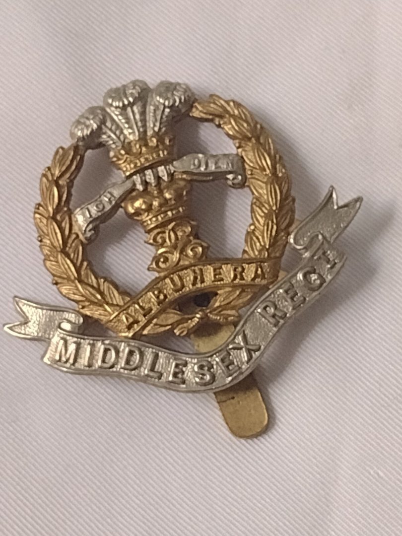 WW1 Middlesex Regiment Cap Badge Bi-Metal Slider 40mm Antique Original