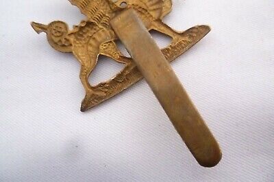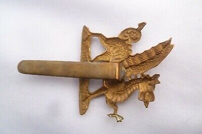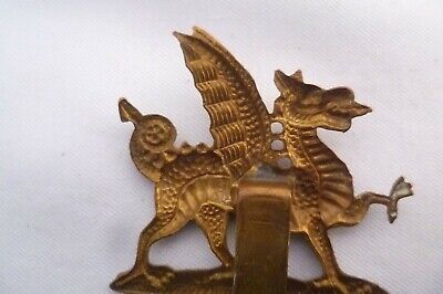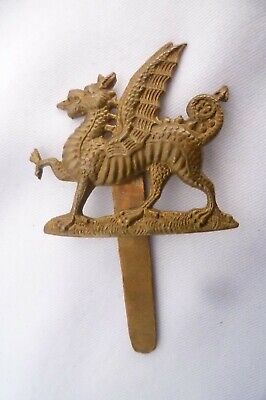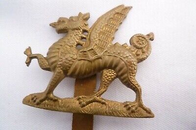 WW1 Monmouthshire Regiment Cap Badge 1908-1922 Era Brass Long Slider Antique Org