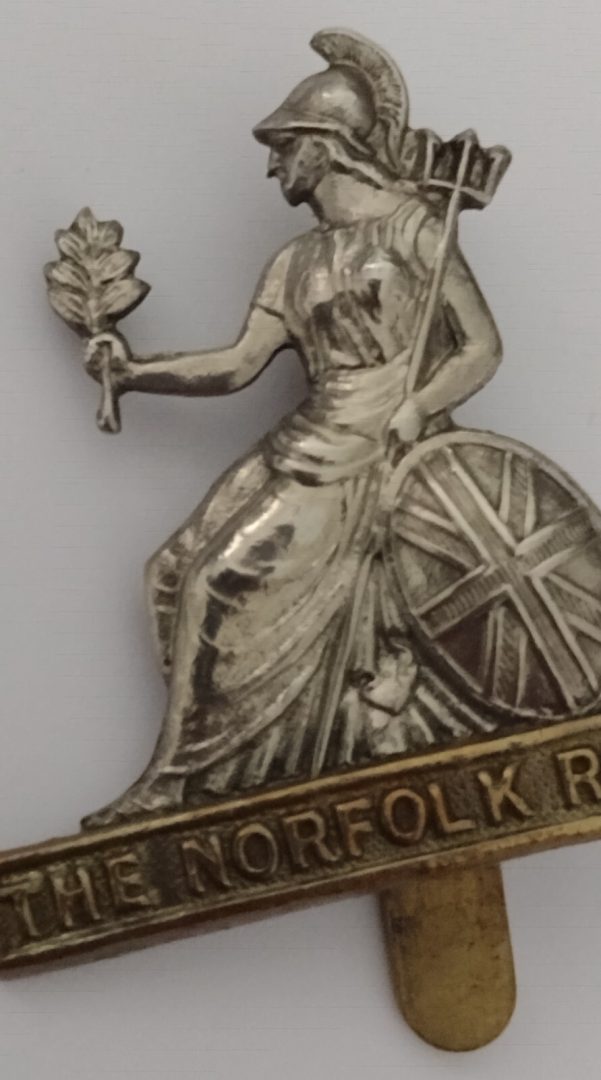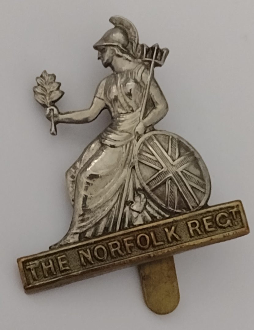 WW1 Norfolk Regiment Original Cap Badge Bi-metal Slider Antique