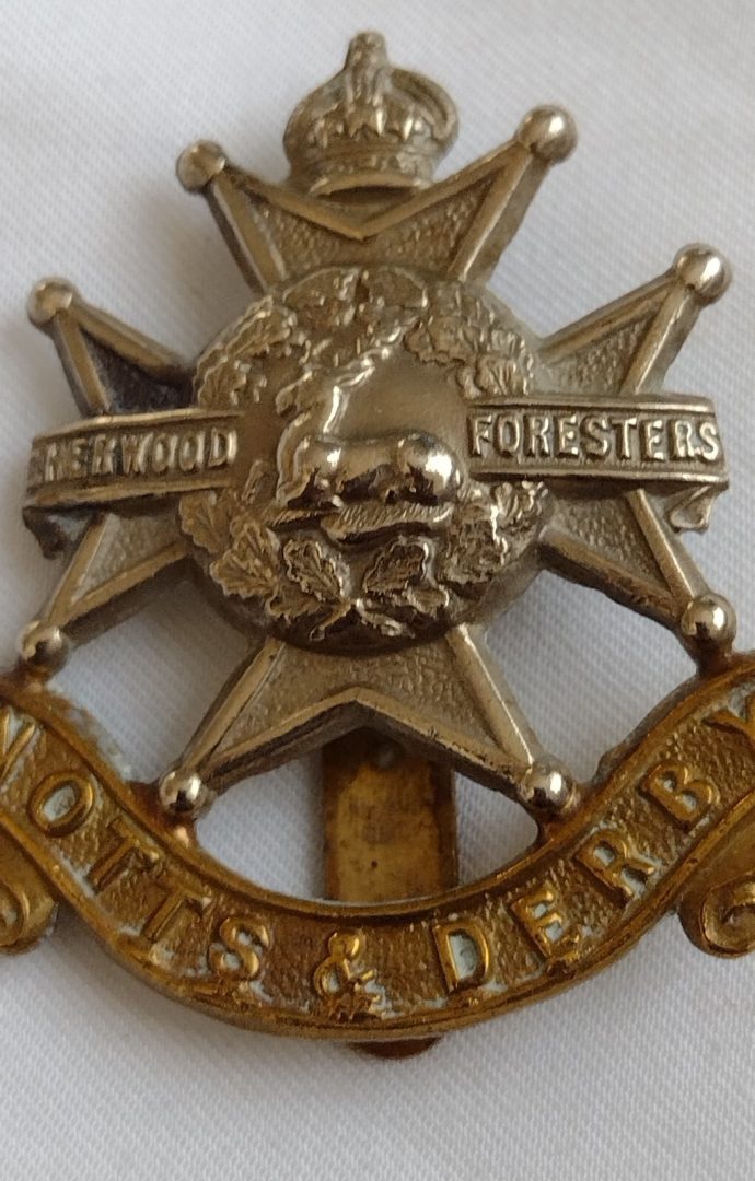 WW1 Notts and Derby Sherwood Foresters Regiment Cap Badge KC BiMetal Antique Org