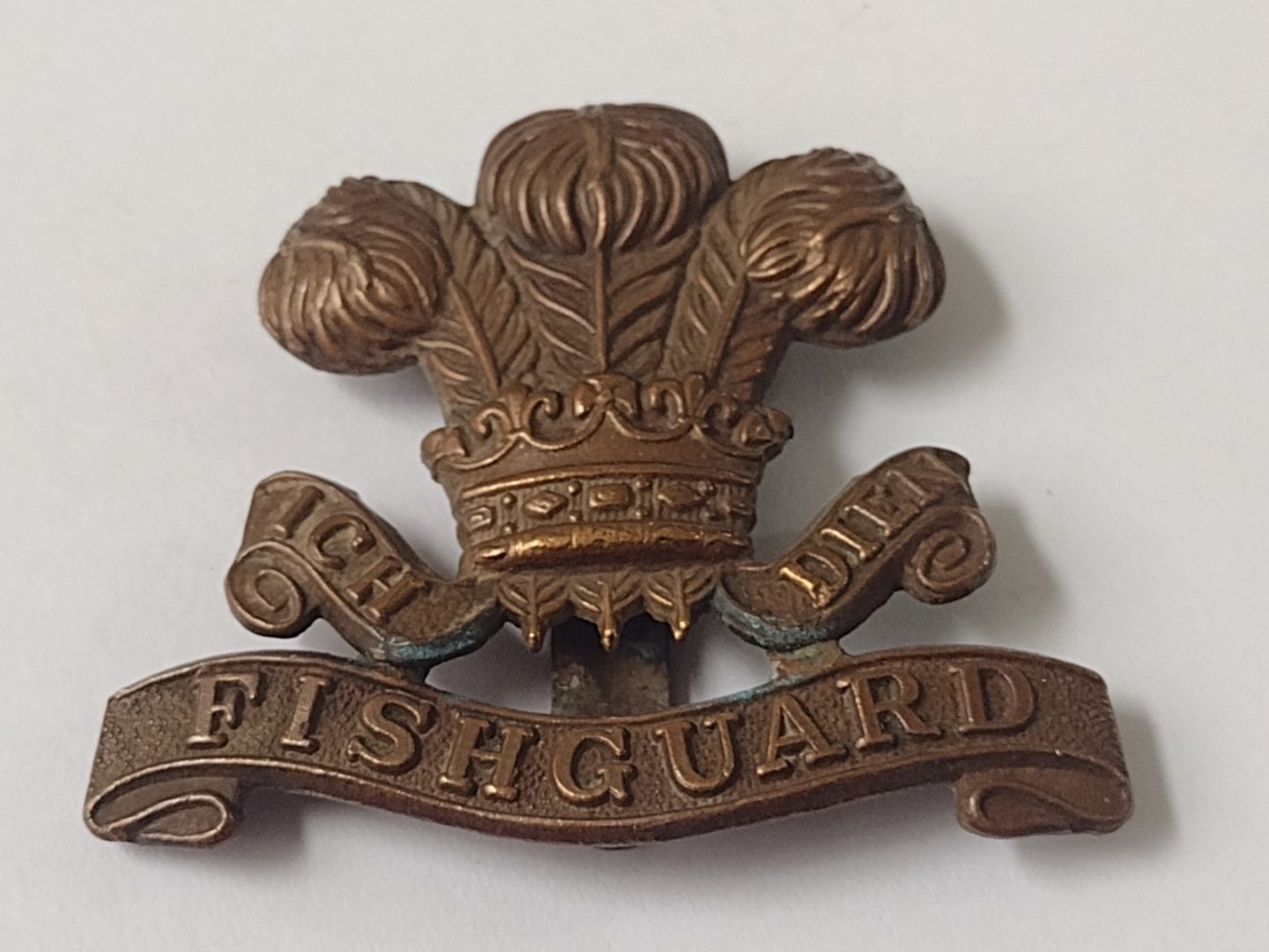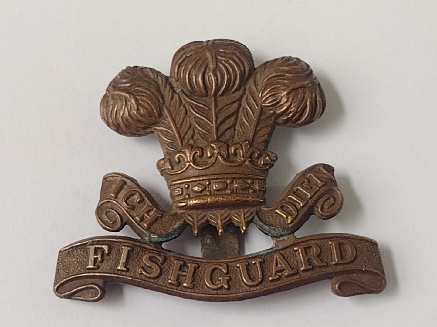 WW1 Pembrokeshire Fishguard Yeomanry Cap Badge Bronze JR Gaunt Antique Original
