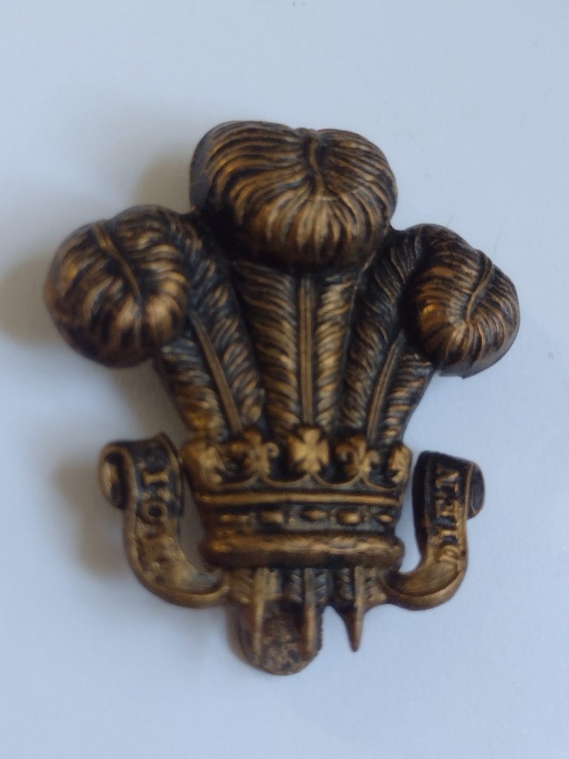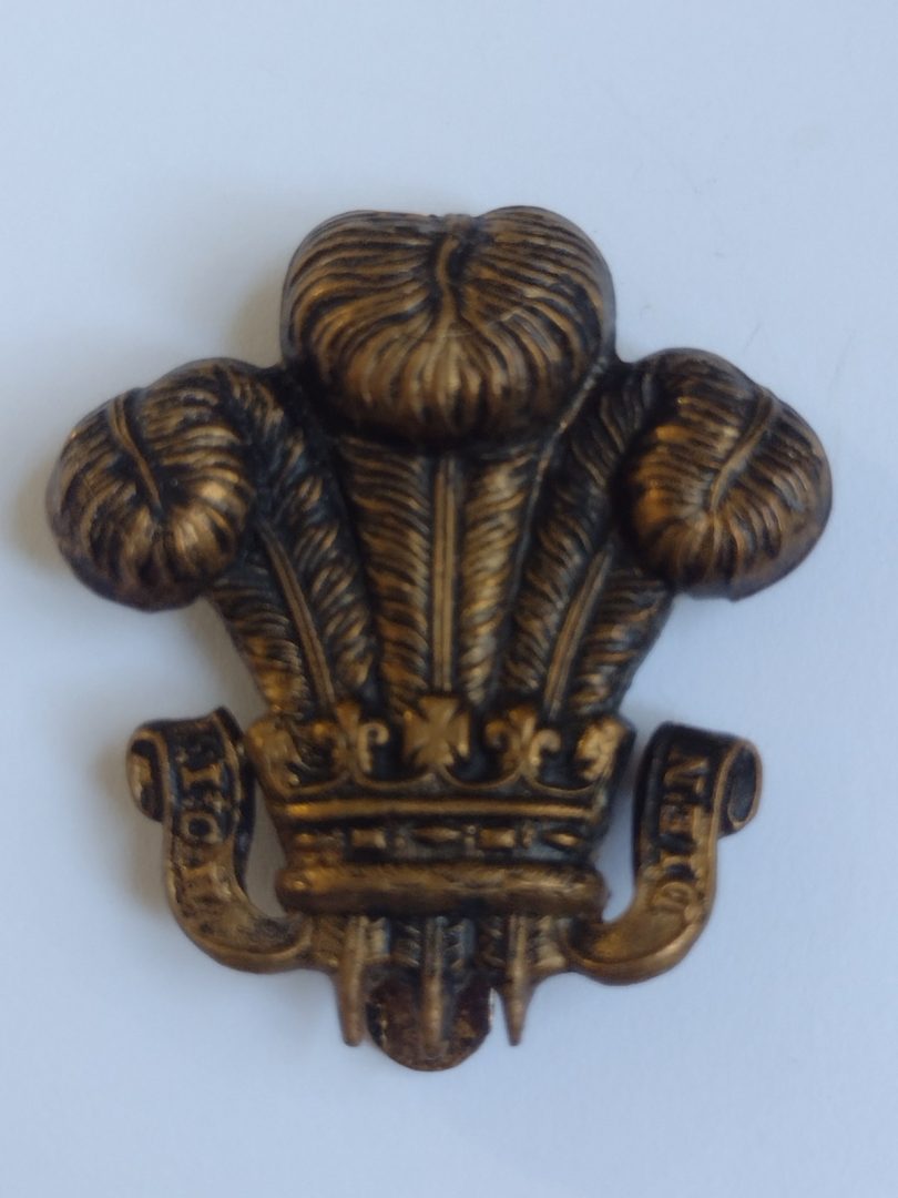 WW1 Prince of Wales Feathers Cavalry Arm Badge Brass Economy Antique – Original