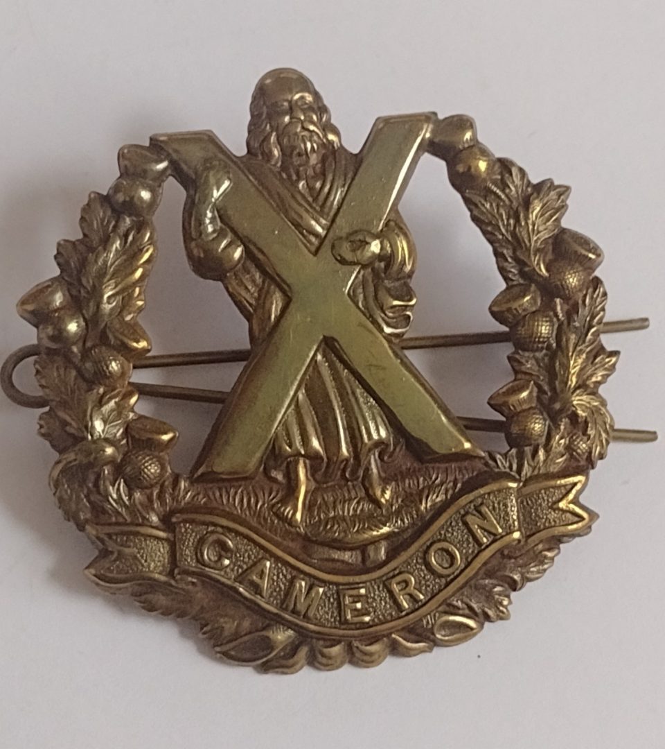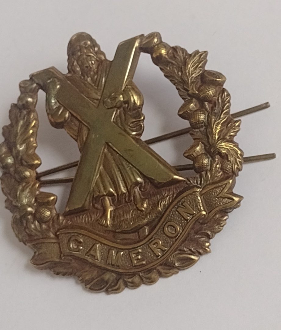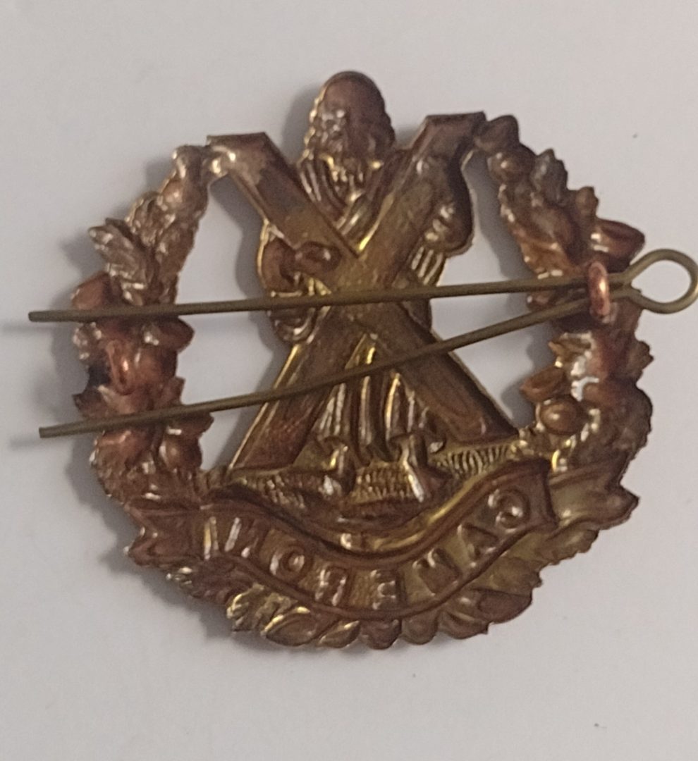 WW1 Queen’s Own Cameron Highlanders Cap Badge Brass Economy Antique – Original