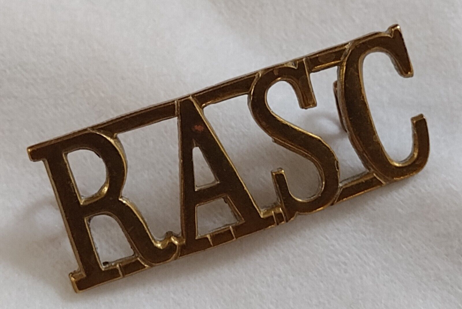 WW1 RASC Title Royal Army Service Corps Shoulder Title Brass 18 mm ANTIQUE Org