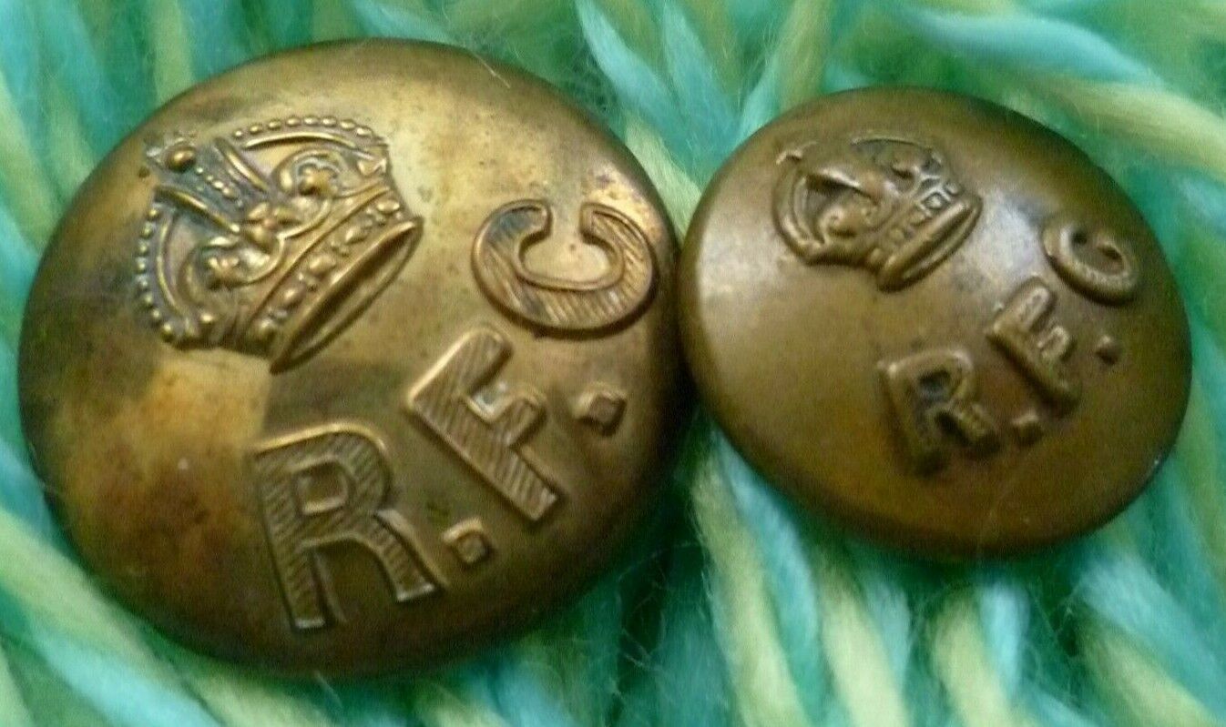 WW1 RFC Royal Flying Corps Uniform Button KC 2 pcs Brass ANTIQUE Org