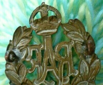 WW1 ROYAL AIR FORCE CAP BADGE KC RAF BRASS 2 LUGS ANTIQUE ORIGINAL