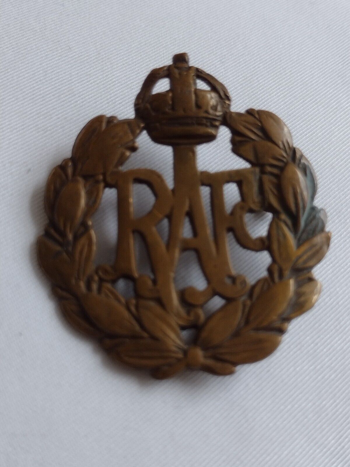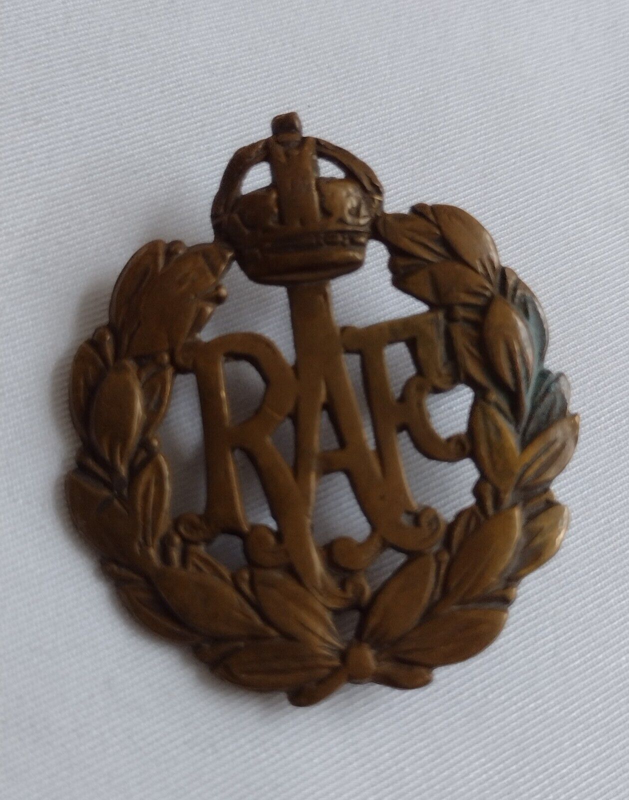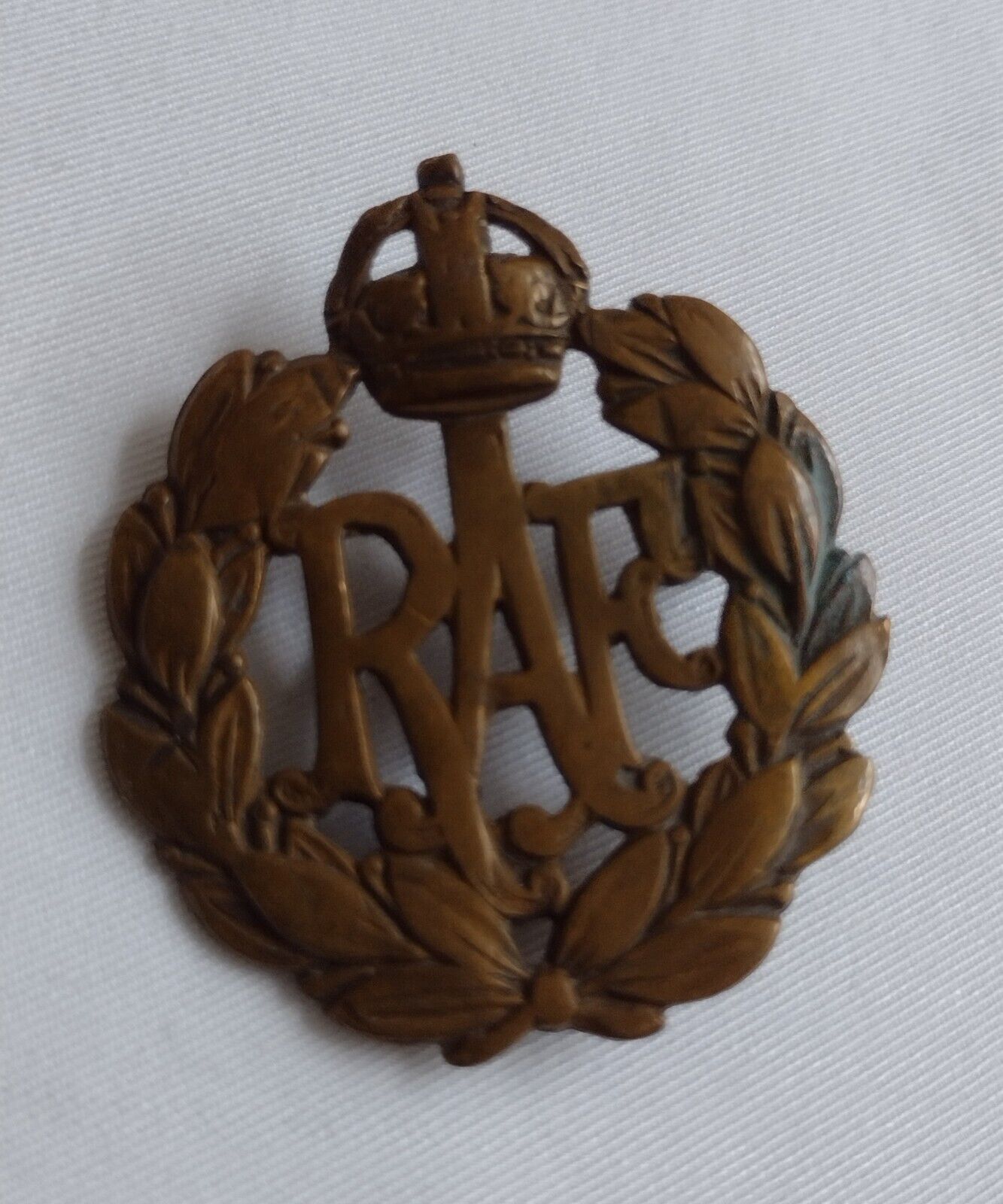 WW1 Royal Air Force Cap Badge KC Solid Brass Antique Org