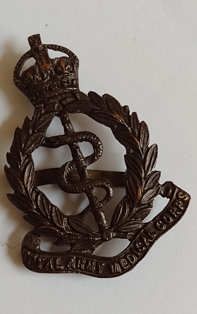 WW1 Royal Army Medical Corps Cap Badge KC Bronze 42mm ANTIQUE Original