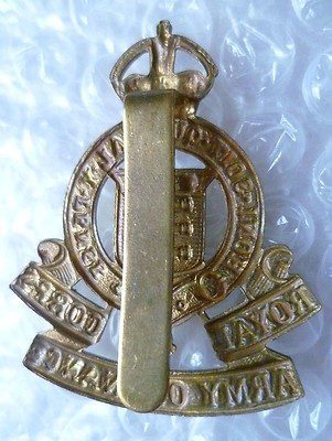 WW1 Royal Army Ordnance Corps Cap Badge KC All Brass Antique Original