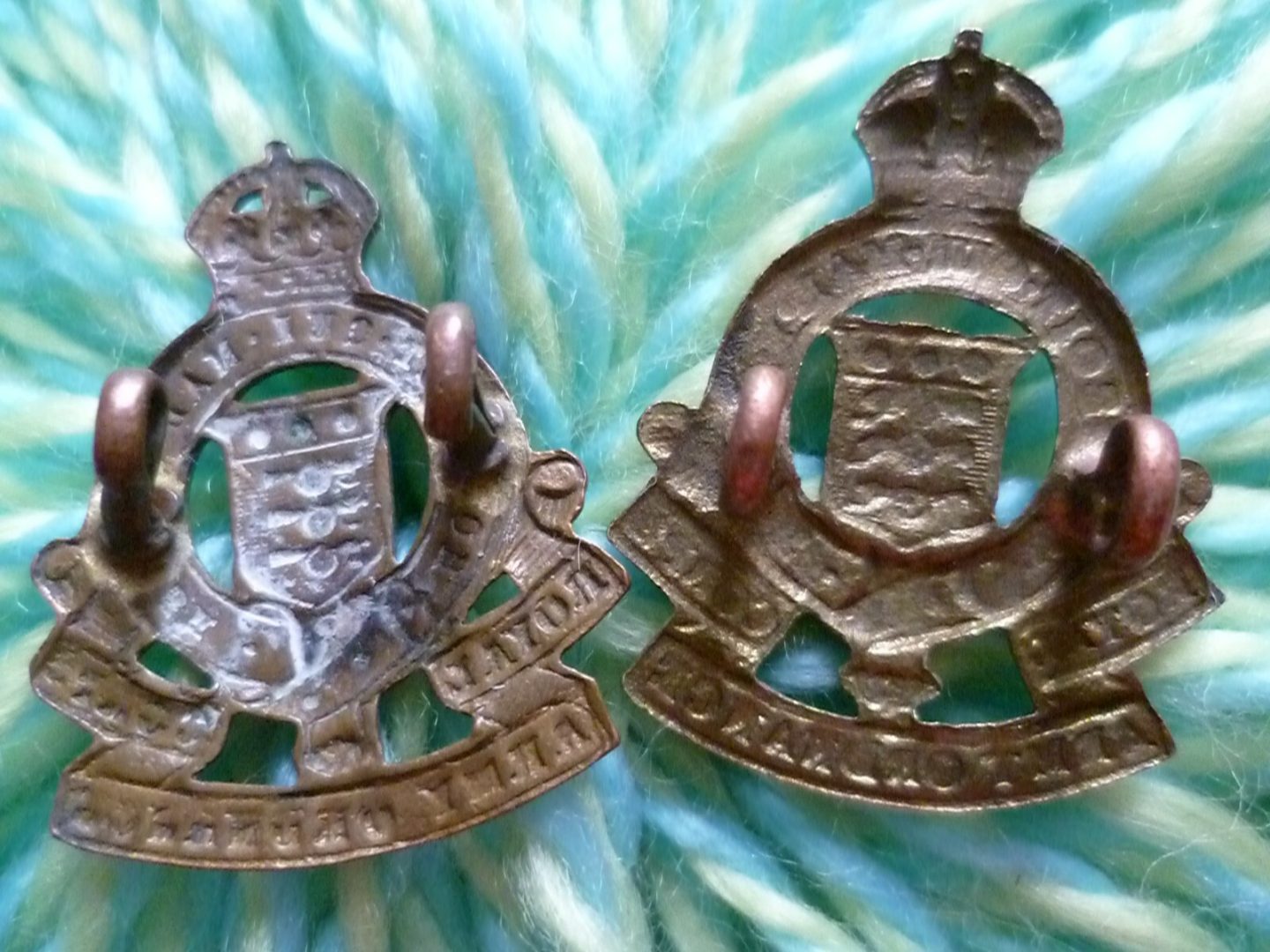 WW1 Royal Army Ordnance Corps COLLAR Badge KC Lugs All Brass ANTIQUE Original