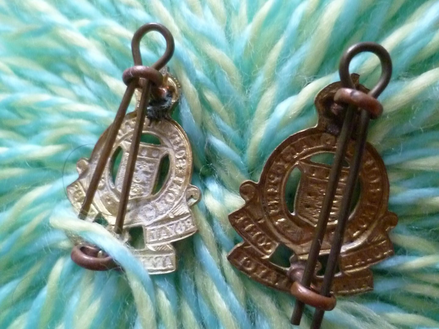 WW1 Royal Army Ordnance Corps COLLAR Badge KC Lugs All Brass ANTIQUE Original