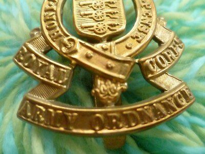 WW1 Royal Army Ordnance Corps Original Cap Badge Brass Slider 50mm Antique