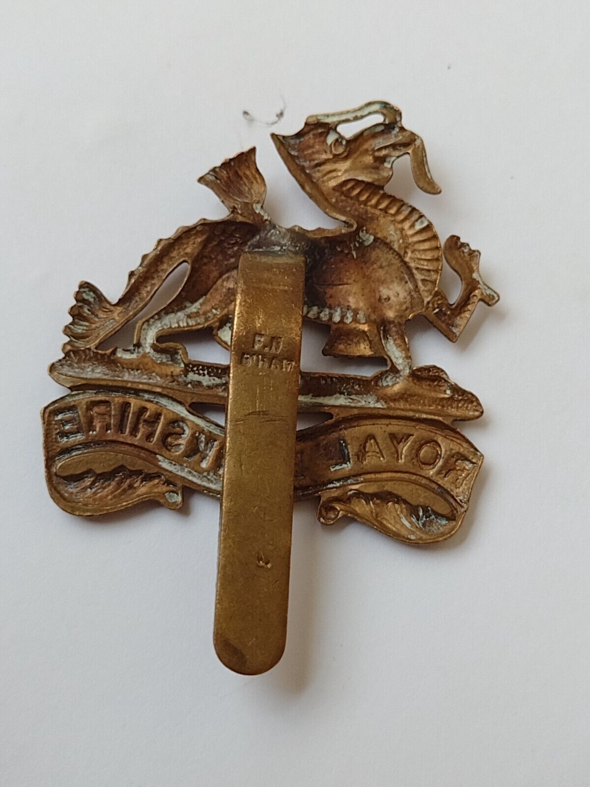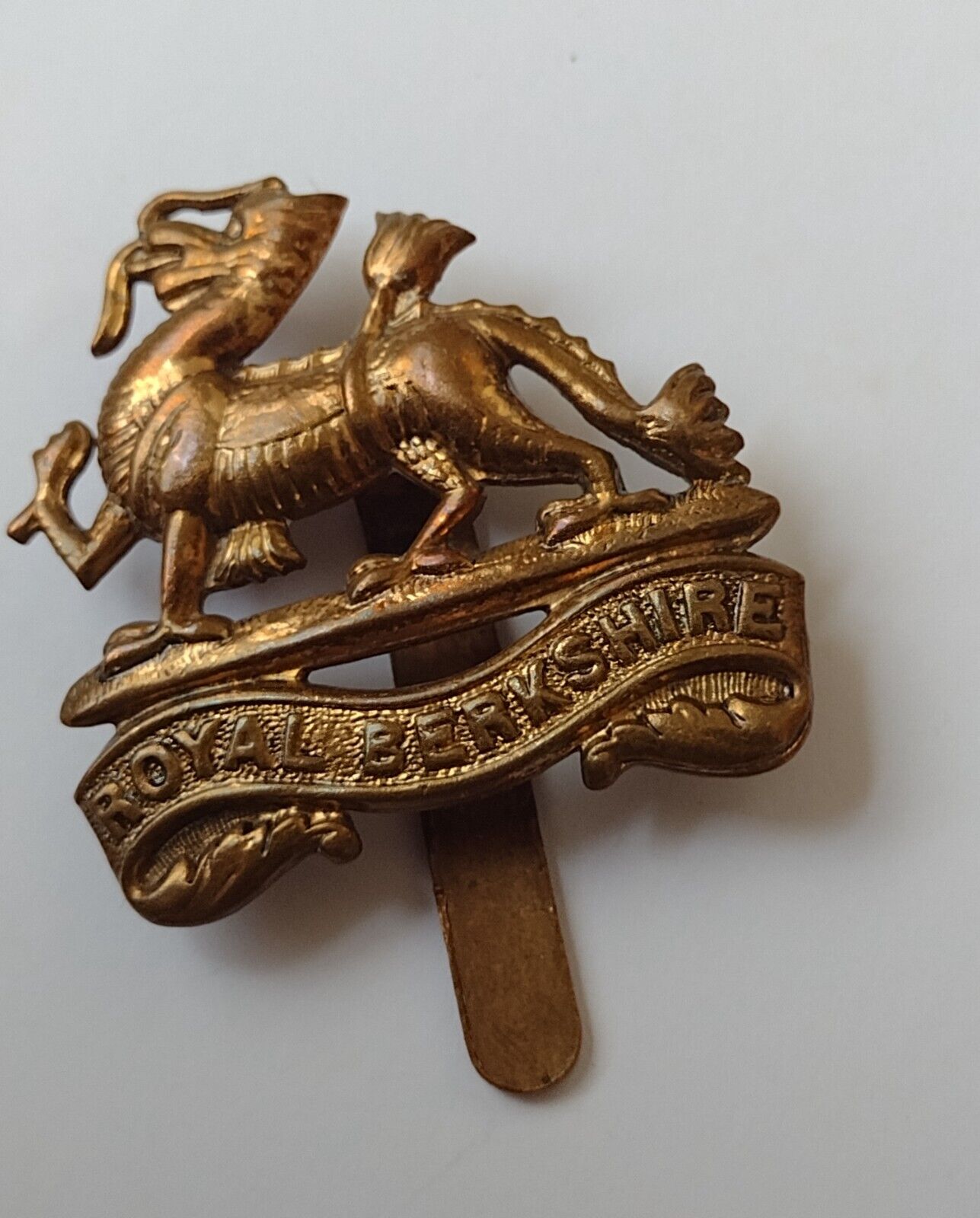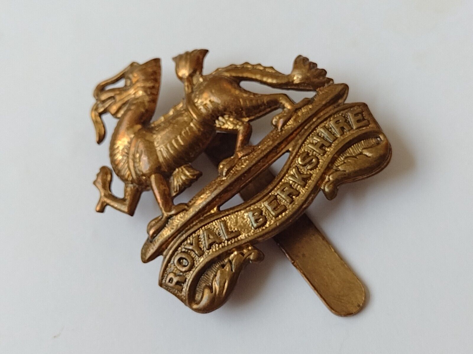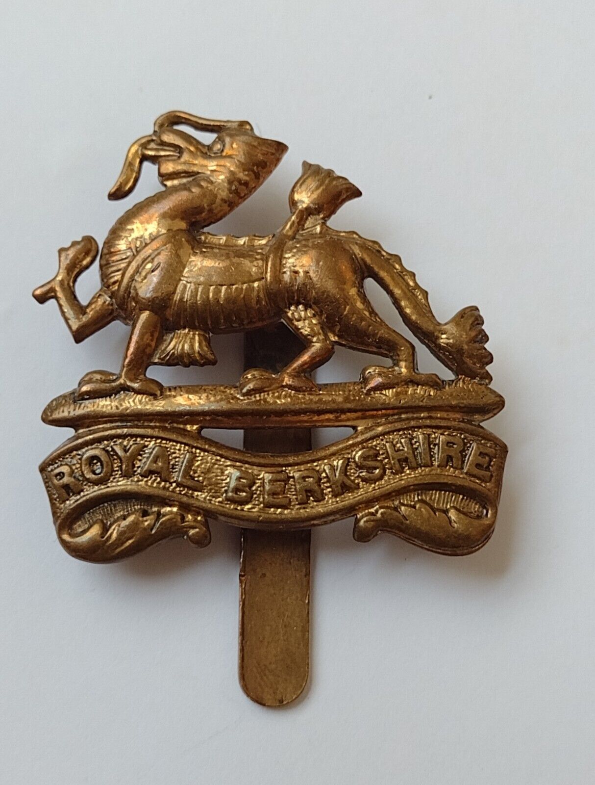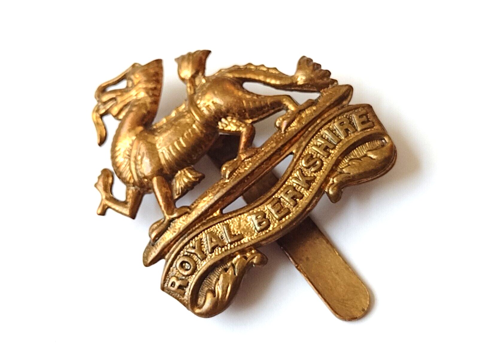 WW1 Royal Berkshire Regiment Cap Badge Brass Long Slider Maker FN Antique Org