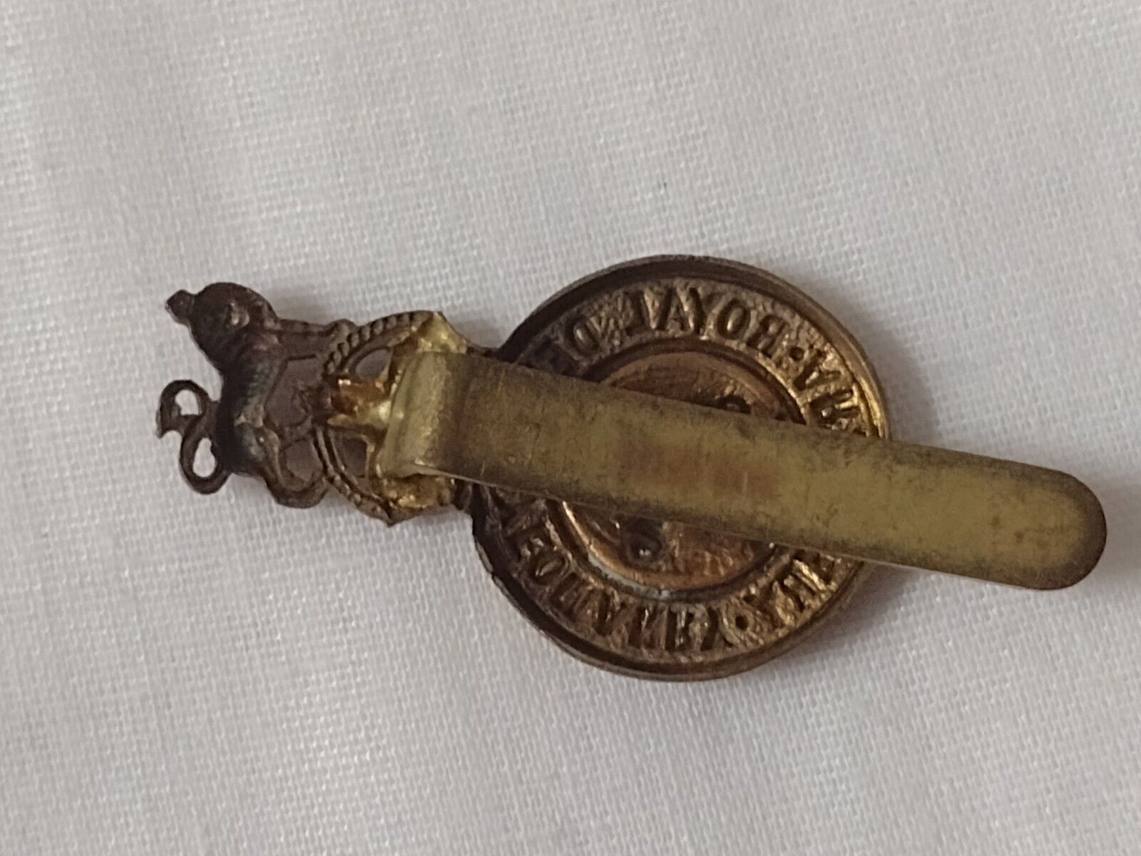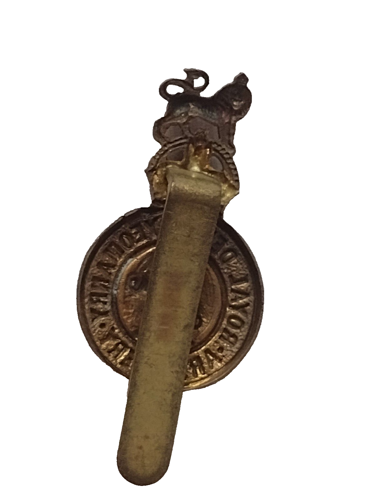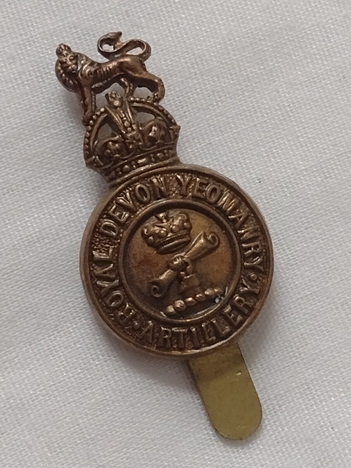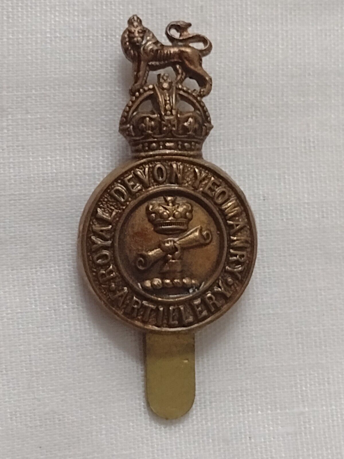 WW1 Royal Devon Yeomanry Artillery Cap Badge KC Brass Slider 40mm Antique Org