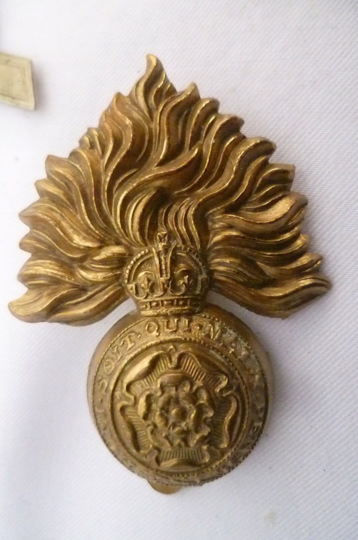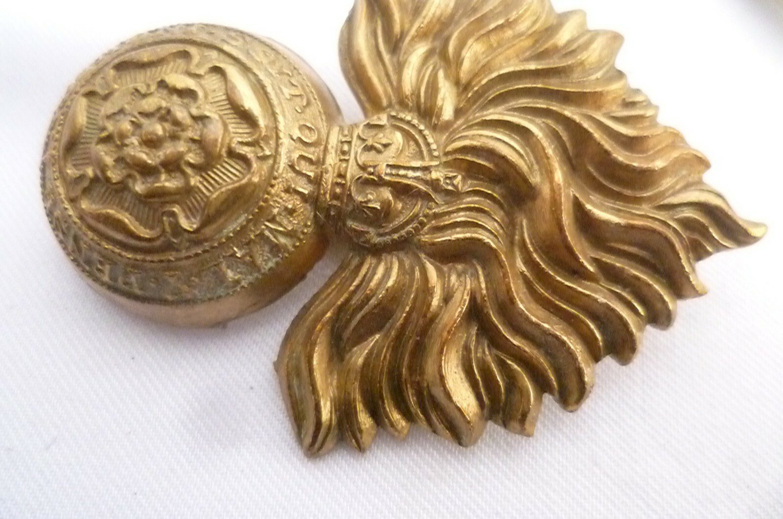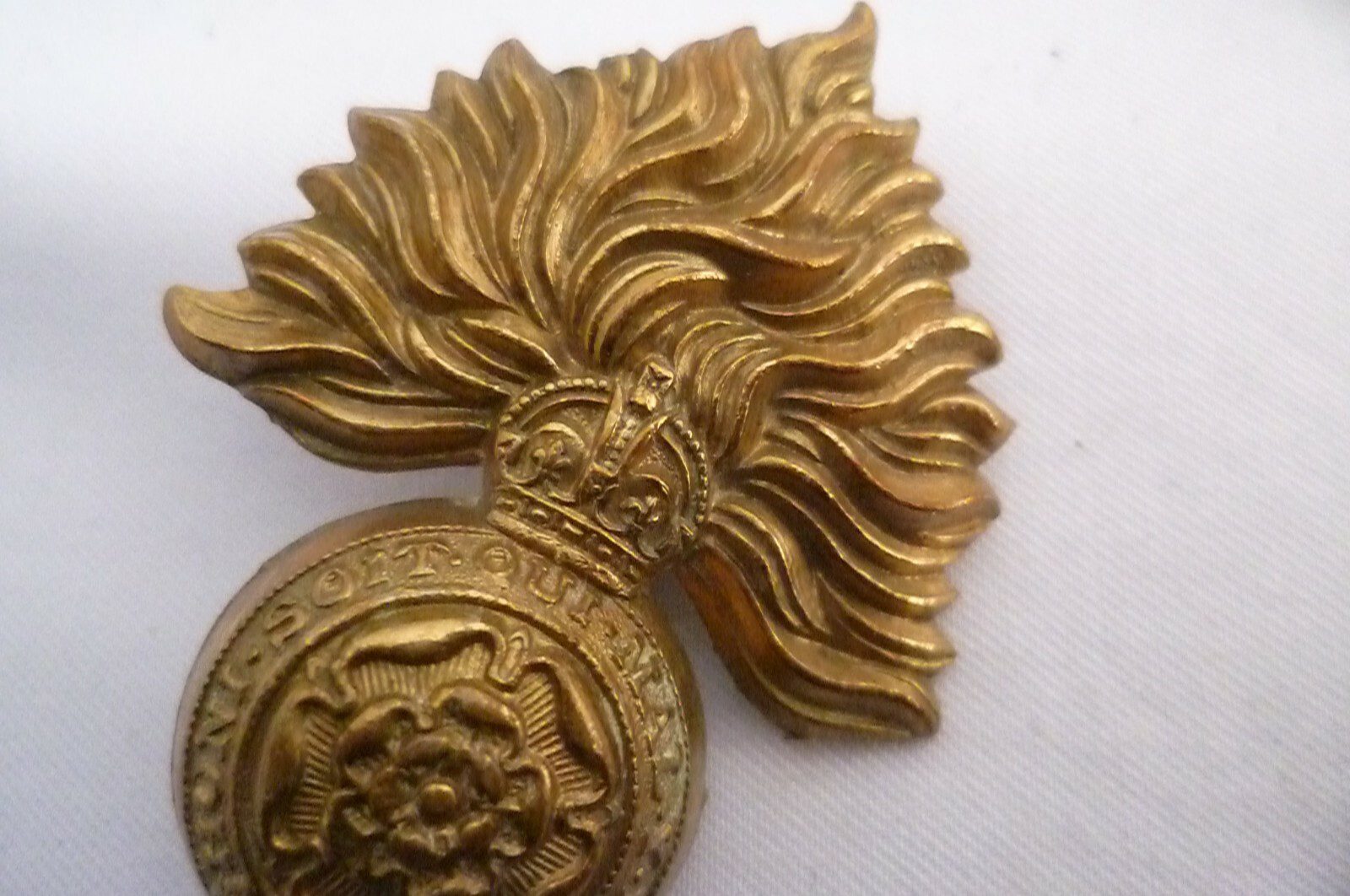 WW1 Royal Fusiliers Officer’s Cap Badge KC Brass Slider Antique Original