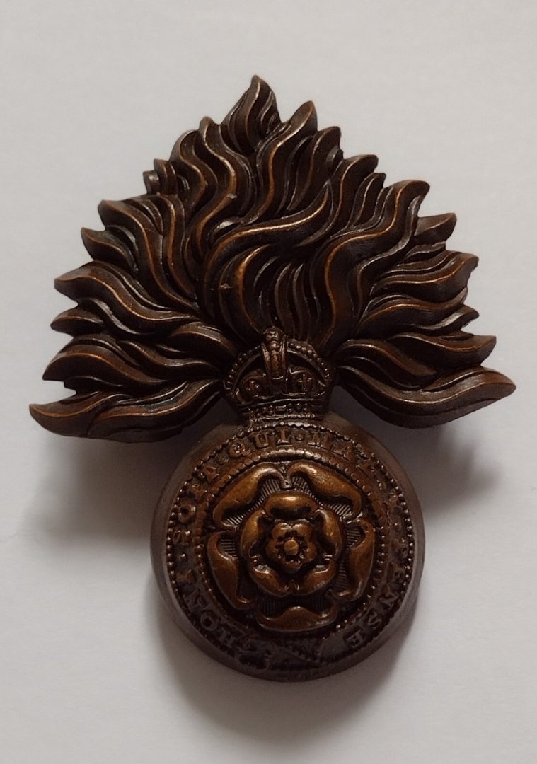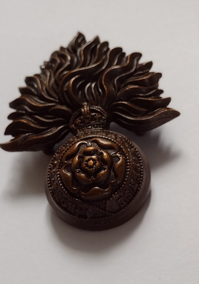 WW1 Royal Fusiliers Officer’s Cap Badge KC Bronze 2 Lugs 50mm ANTIQUE Original