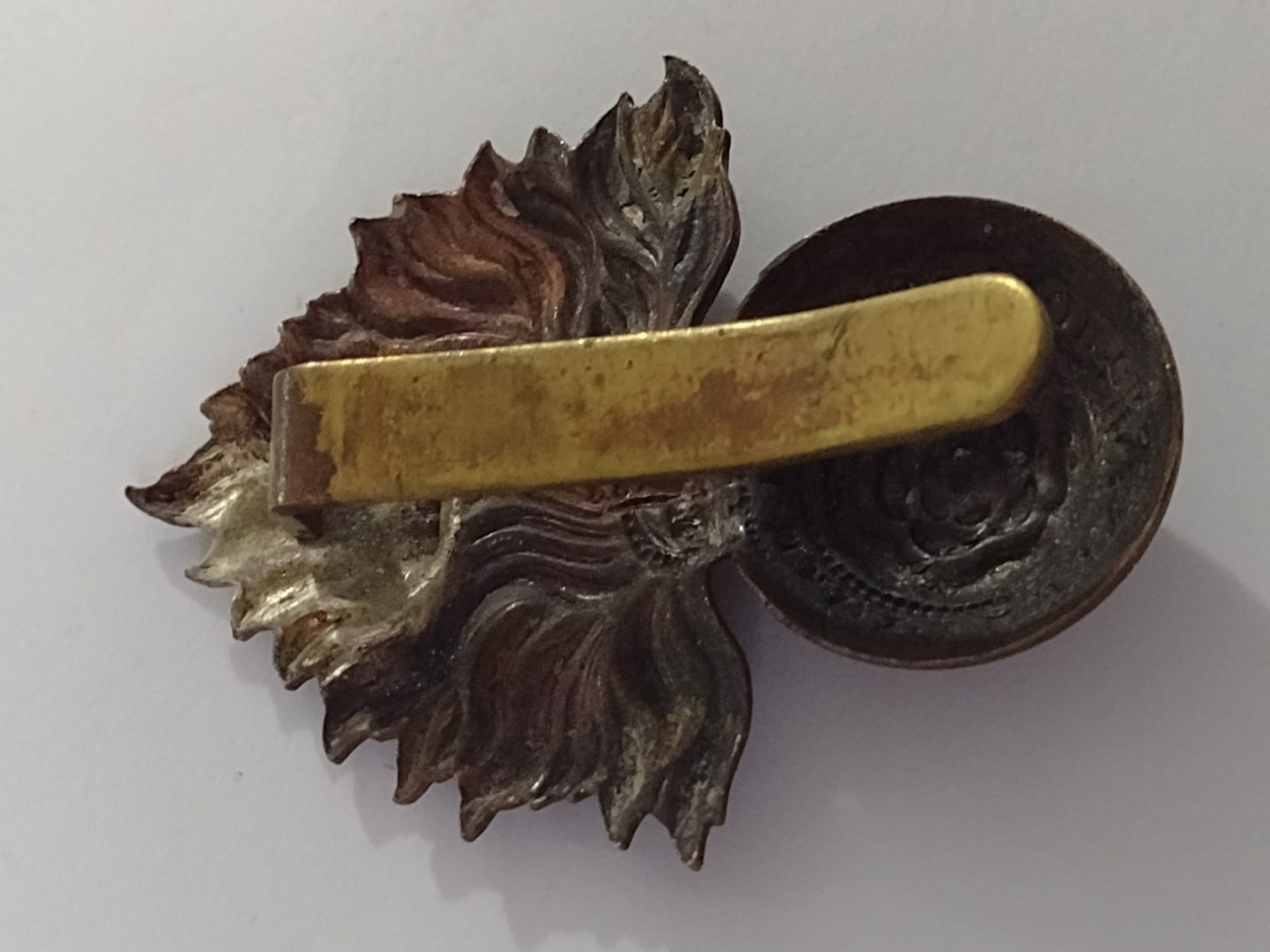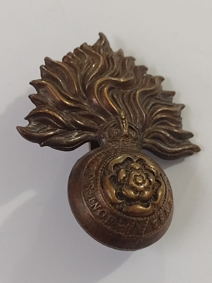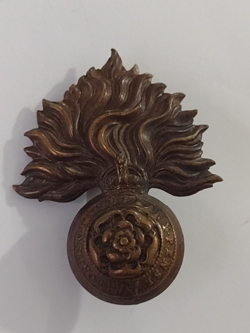 WW1 Royal Fusiliers Officer’s Cap Badge KC Slider Bronze Antique – Original