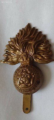WW1 Royal Fusiliers Original Cap Badge KC Brass Slider Antique