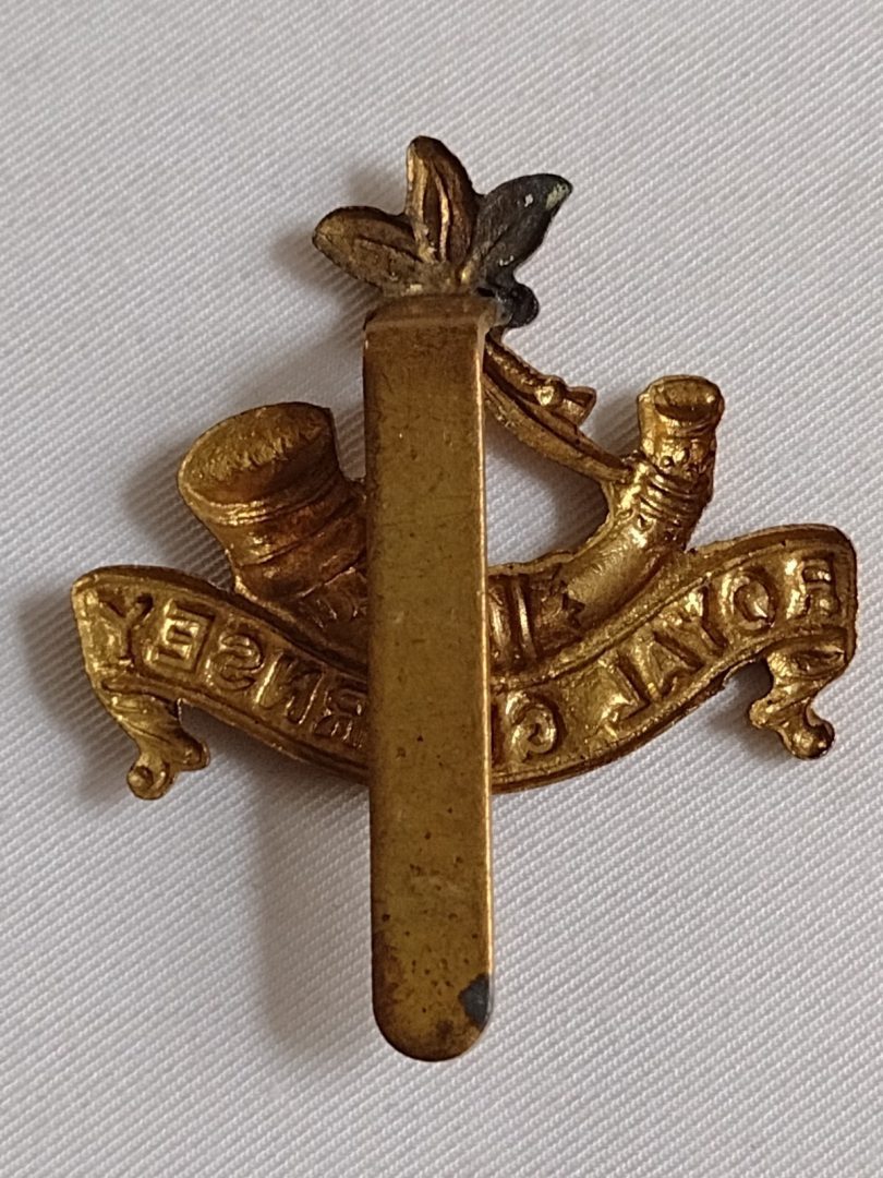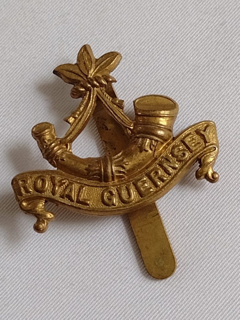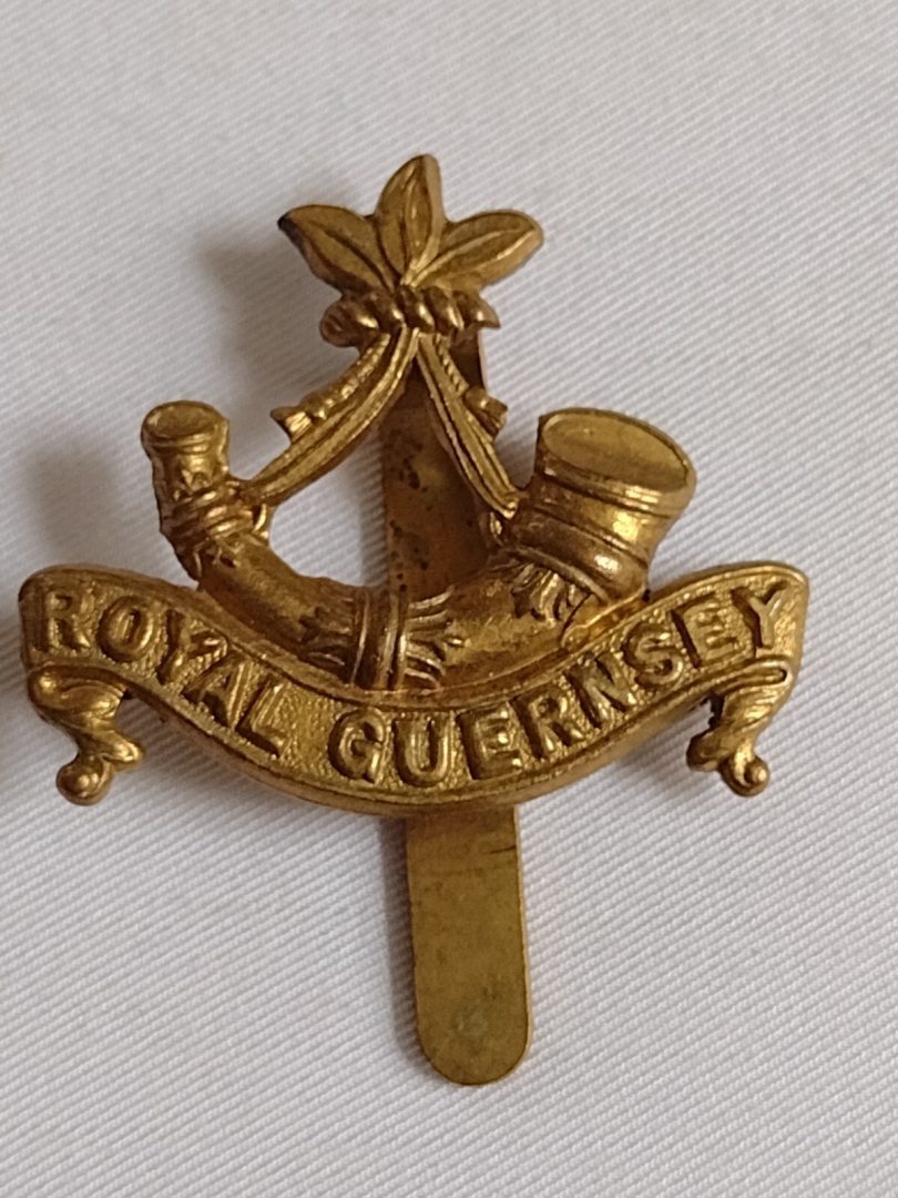 WW1 Royal Guernsey Light Infantry Regiment Cap Badge Brass Slider Antique Org
