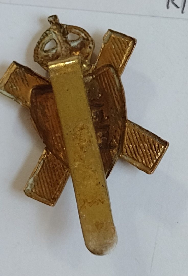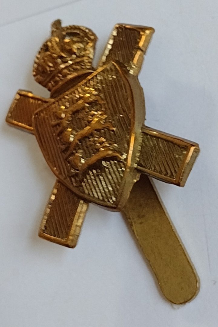 WW1 Royal Jersey Light Infantry Militia Cap Badge KC Brass Slider ANTIQUE Org
