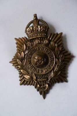 WW1 Royal Marines Gibraltar Helmet Plate Cap Badge KC Brass 87 mm – Original
