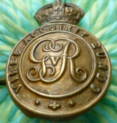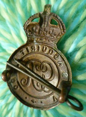WW1 Royal Military College Sandhurst Training Cap Badge GV Lugs Antique Original