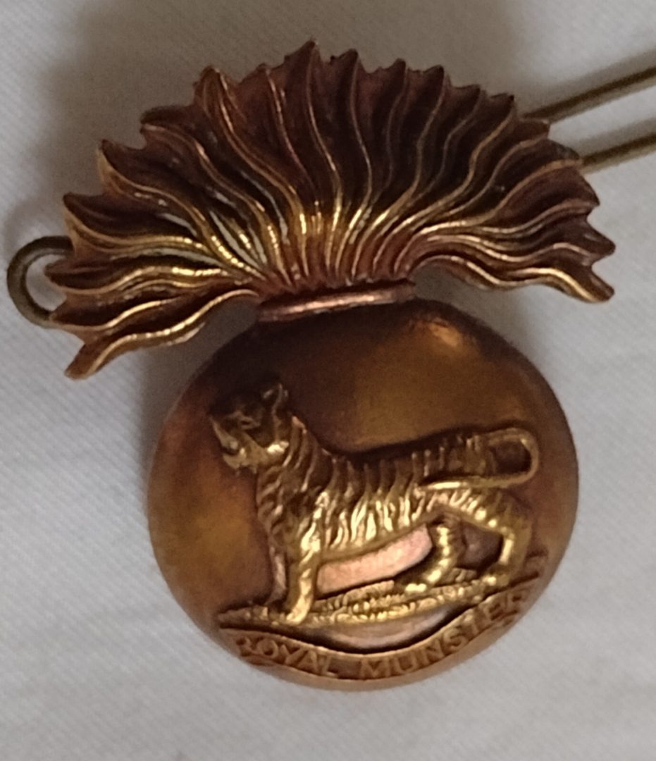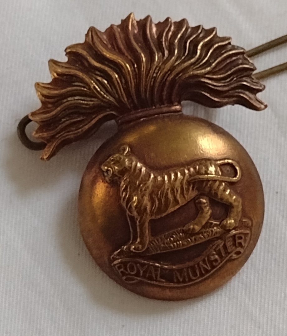WW1 Royal Munster Fusiliers Original Cap Badge Brass Economy 2 Lugs Antique