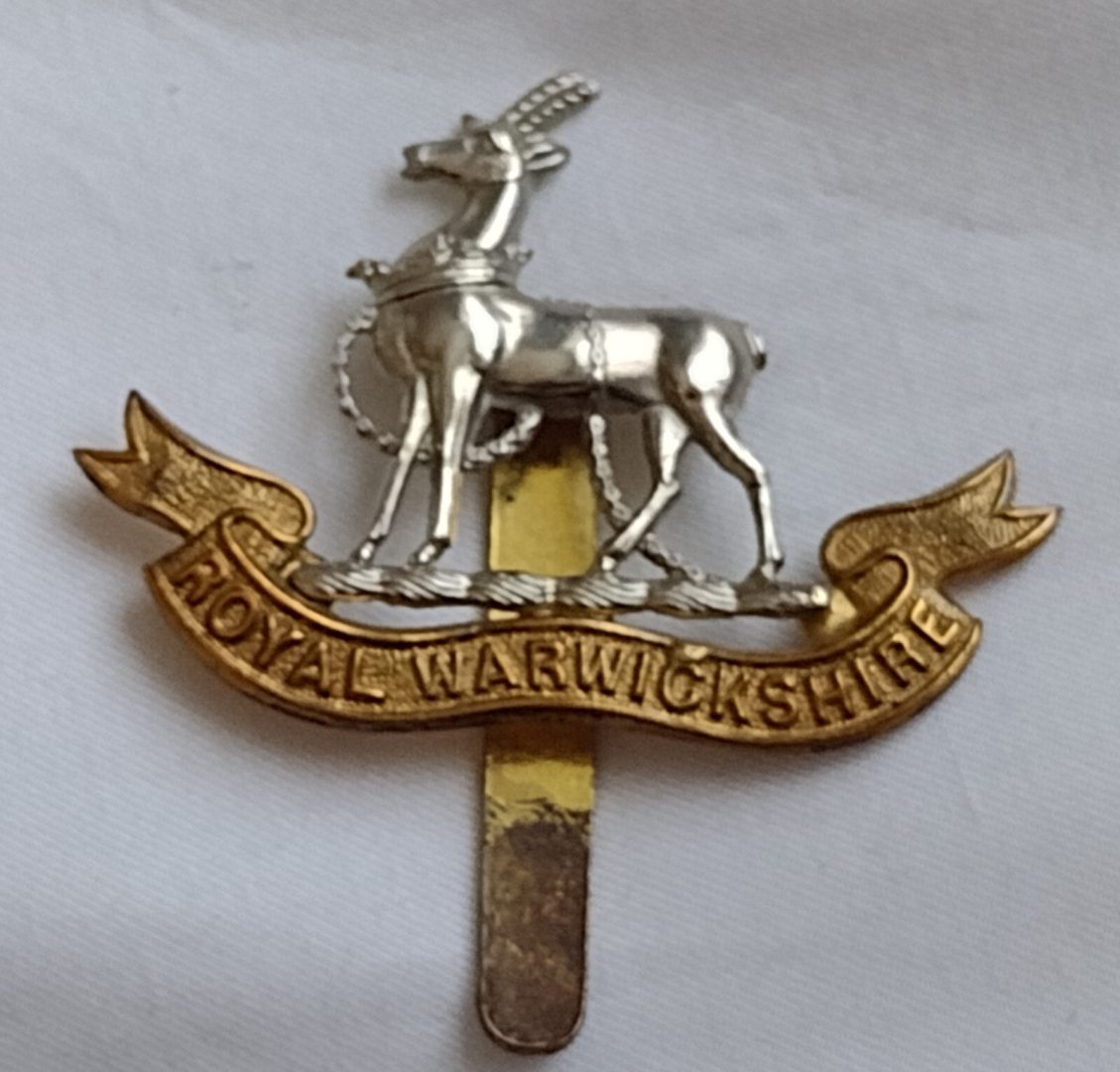 WW1 Royal Warwickshire Regiment Cap Badge Bi-Metal Slider 43 mm Antique Original