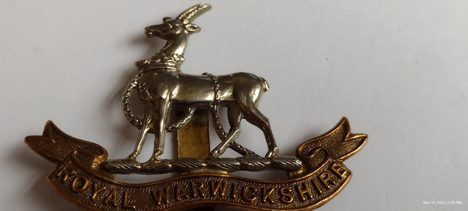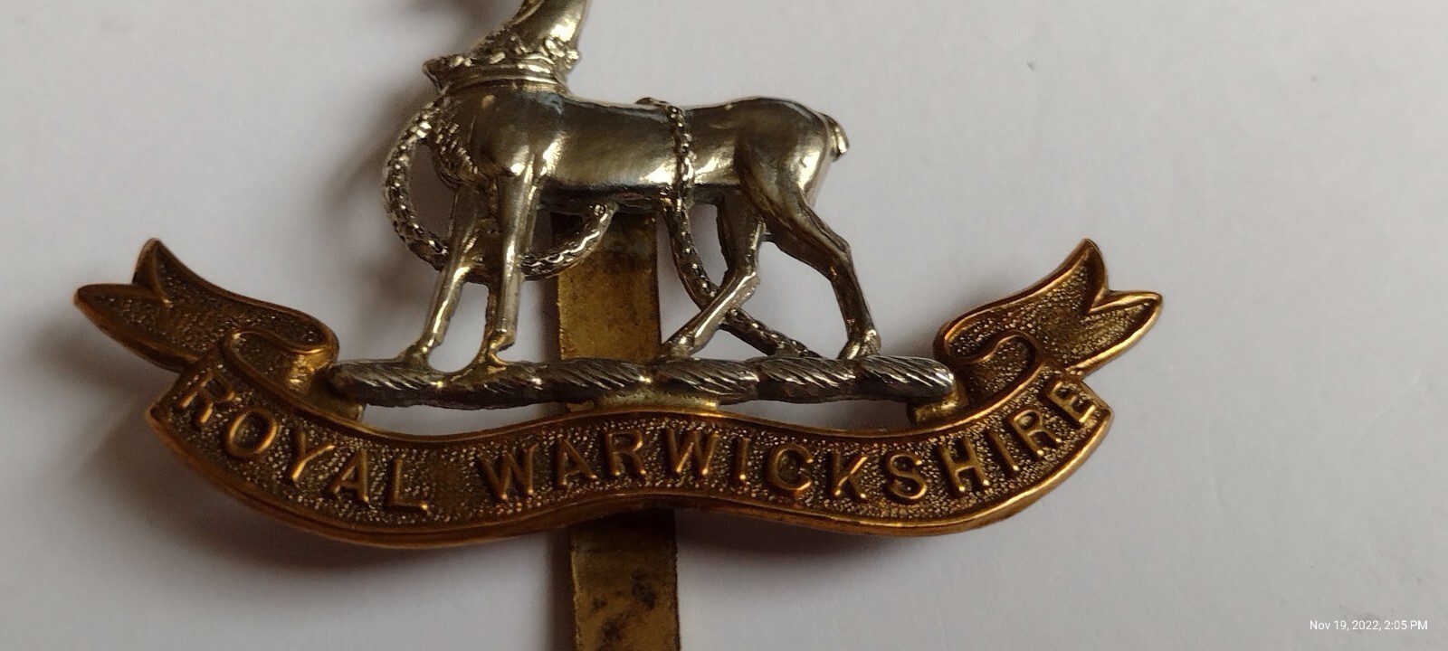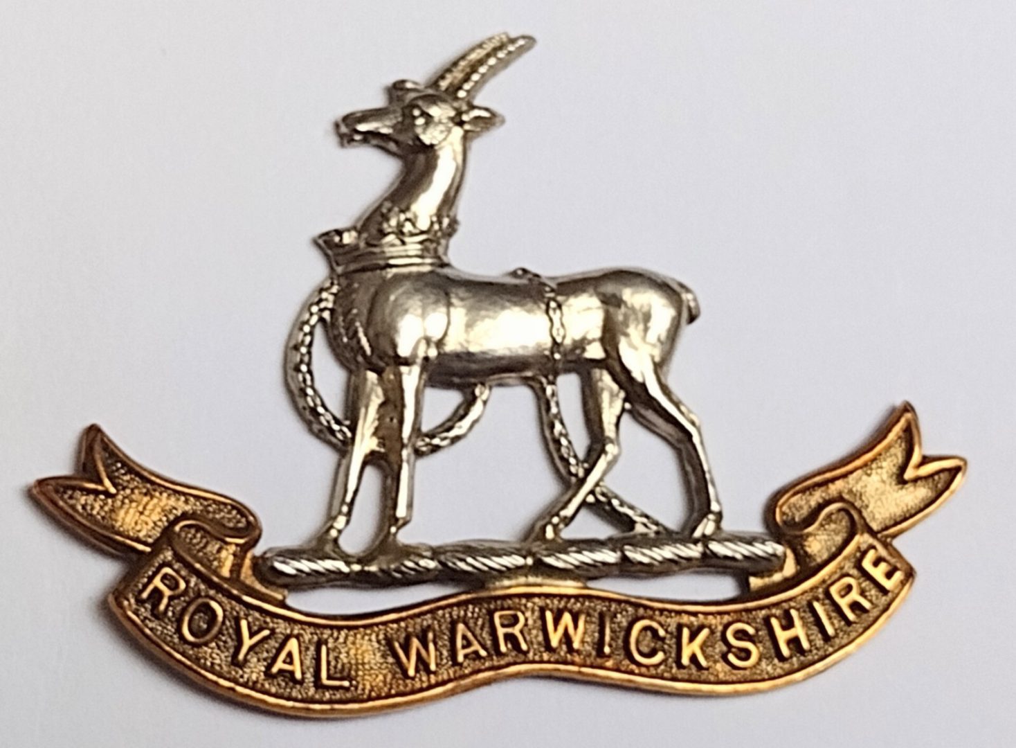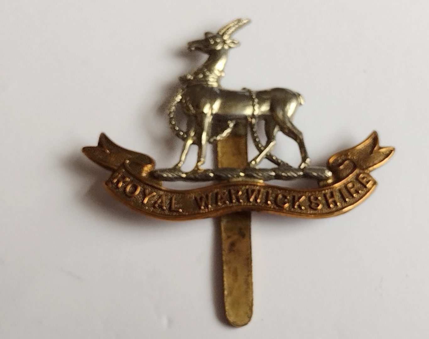 WW1 Royal Warwickshire Regiment Cap Badge Gilt & Silver Slider Antique