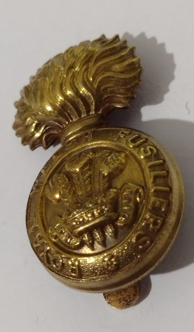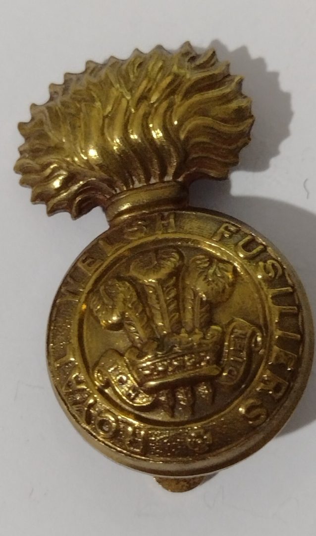 WW1 Royal Welsh Fusiliers Cap Badge All Brass Economy Slider 42 mm ANTIQUE Org