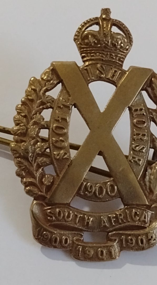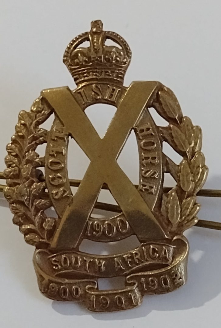 WW1 Scottish Horse Imperial Yeomanry Original Cap Badge KC Brass 46mm Antique