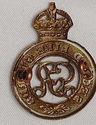 WW1 Second Life Guard Original Cap Badge KC GV Brass 1910 Era 2Lugs Antique