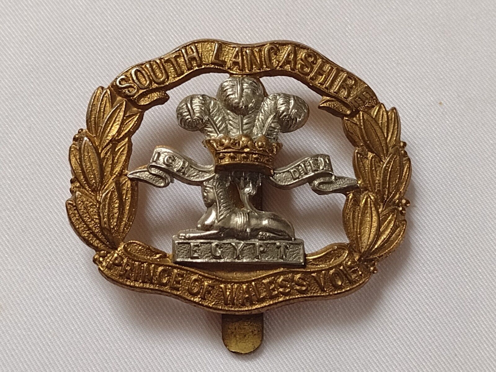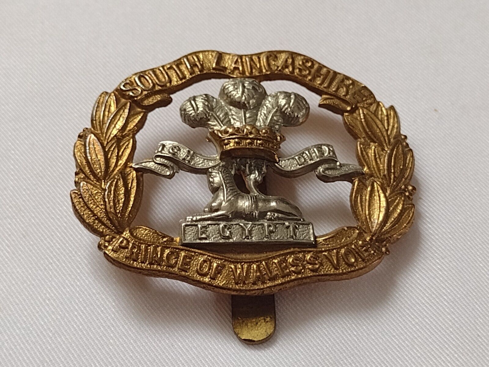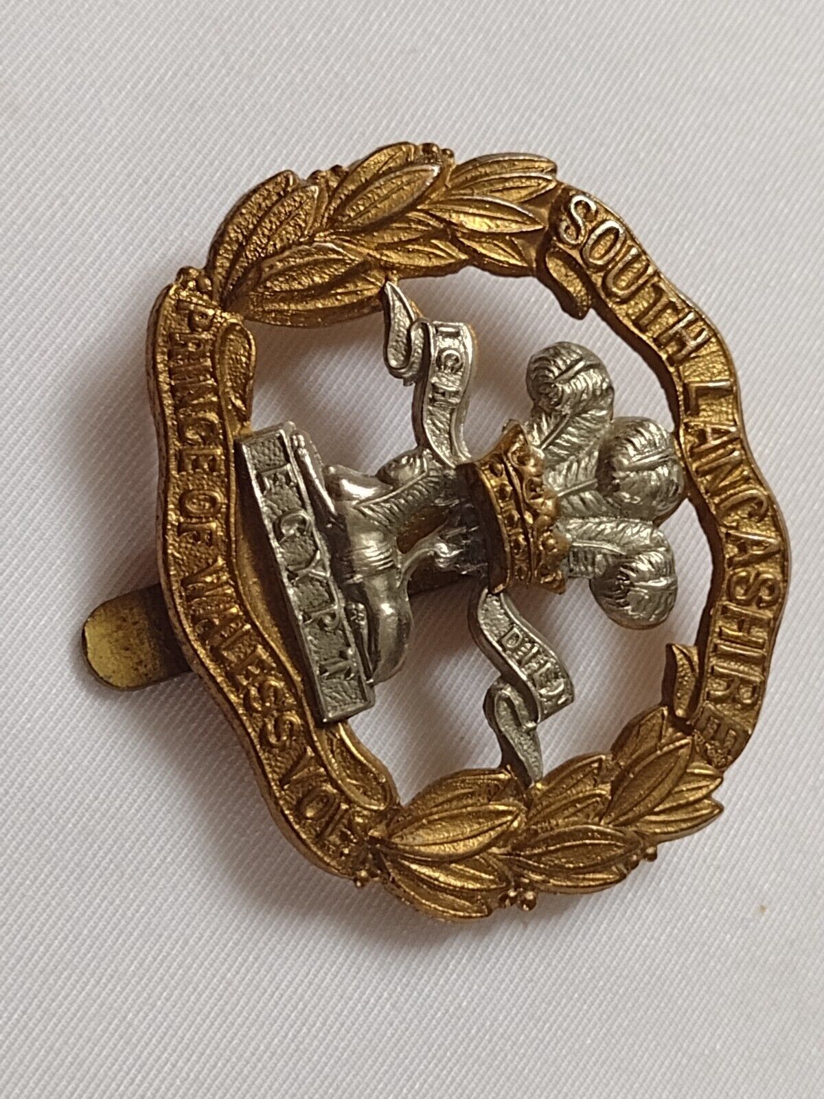 WW1 South Lancashire Regiment Cap Badge Bi-metal Slider 42mm Antique Org